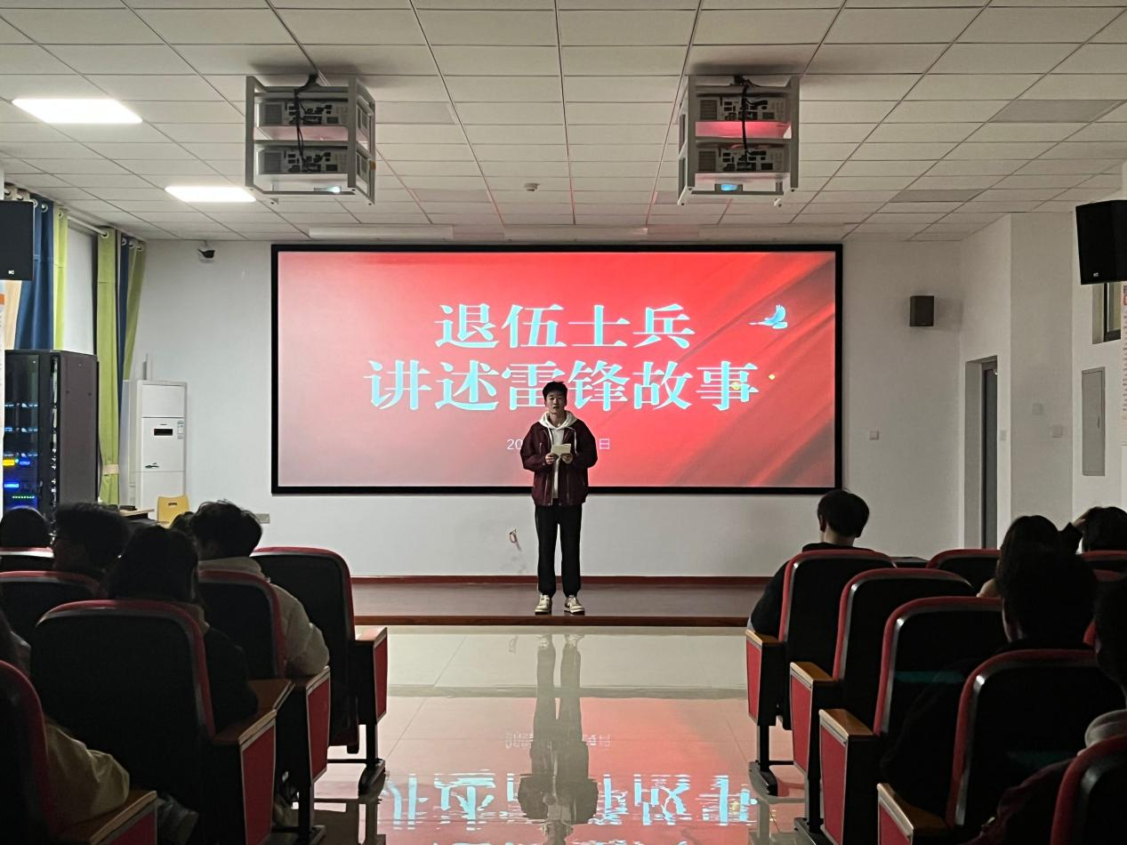 讲一个雷锋故事。万象城娱乐awc线路团总支学院邀请退役大学生士兵来自2022级电商班祝君豪、22会计2班周申奥,围绕“传承红色基因,学习雷锋精神”主题,面向青年团员展开宣讲,从雷锋的生平事迹、卓越成就、社会影响及精神传承等方面讲述,带领青年团员了解雷锋、走近雷锋、缅怀雷锋,用雷锋同志的名言“我愿永远做一颗永不生锈的螺丝钉”来勉励大家,启发大家要学习雷锋同志“挤”和“钻”的精神。