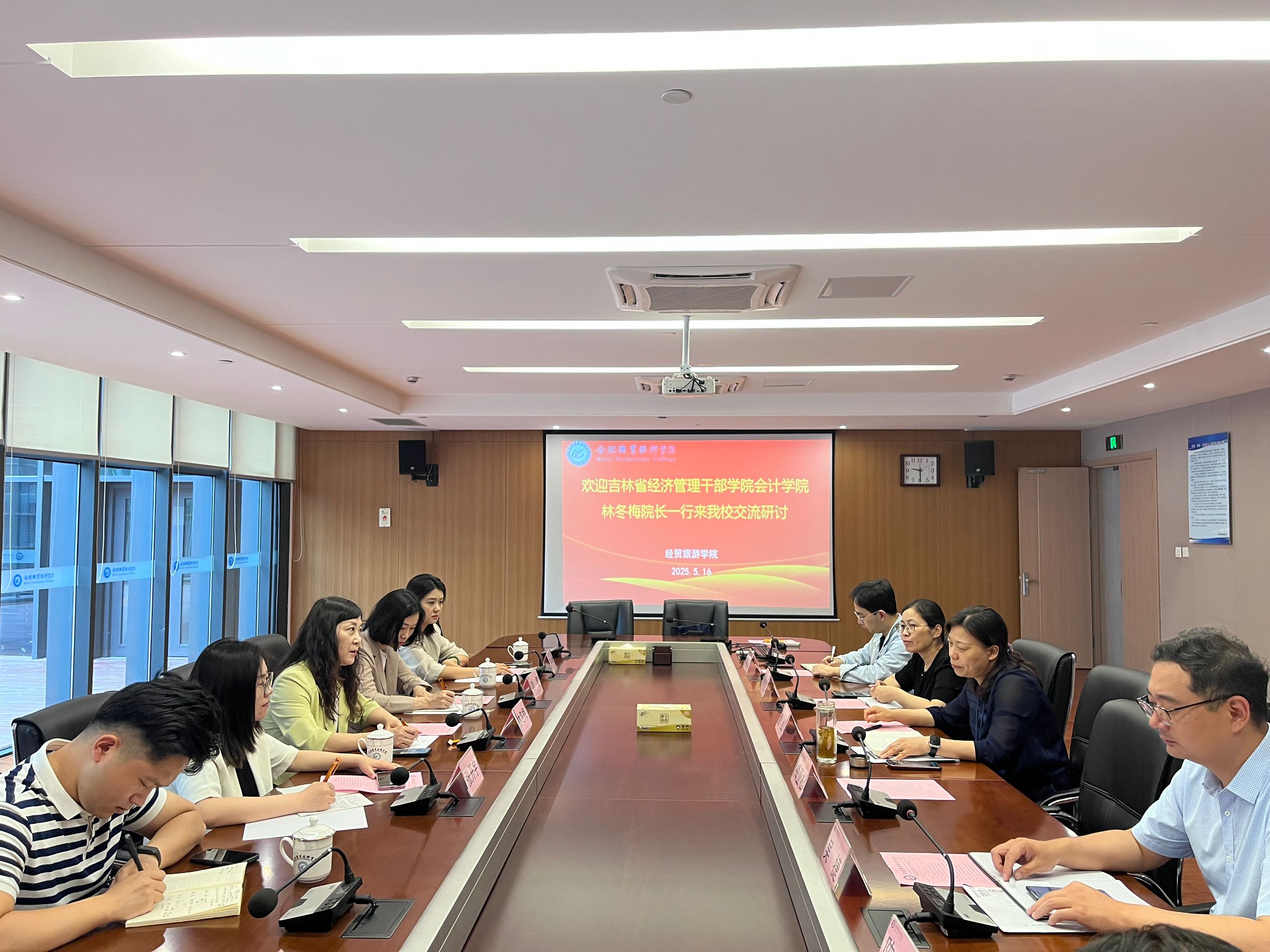 为深化职业教育改革经验共享,促进校际合作与专业建设,近日,吉林省经济管理干部学院会计学院院长林冬梅一行莅临合肥职业技术学院,开展职业教育建设与发展方向经验交流活动。万象城娱乐awc线路党总支书记梅亚松、院长赵红、副院长、教学办主任、会计教研室主任、专业骨干教师及安徽梦森科技有限公司董事长吴捷参会。