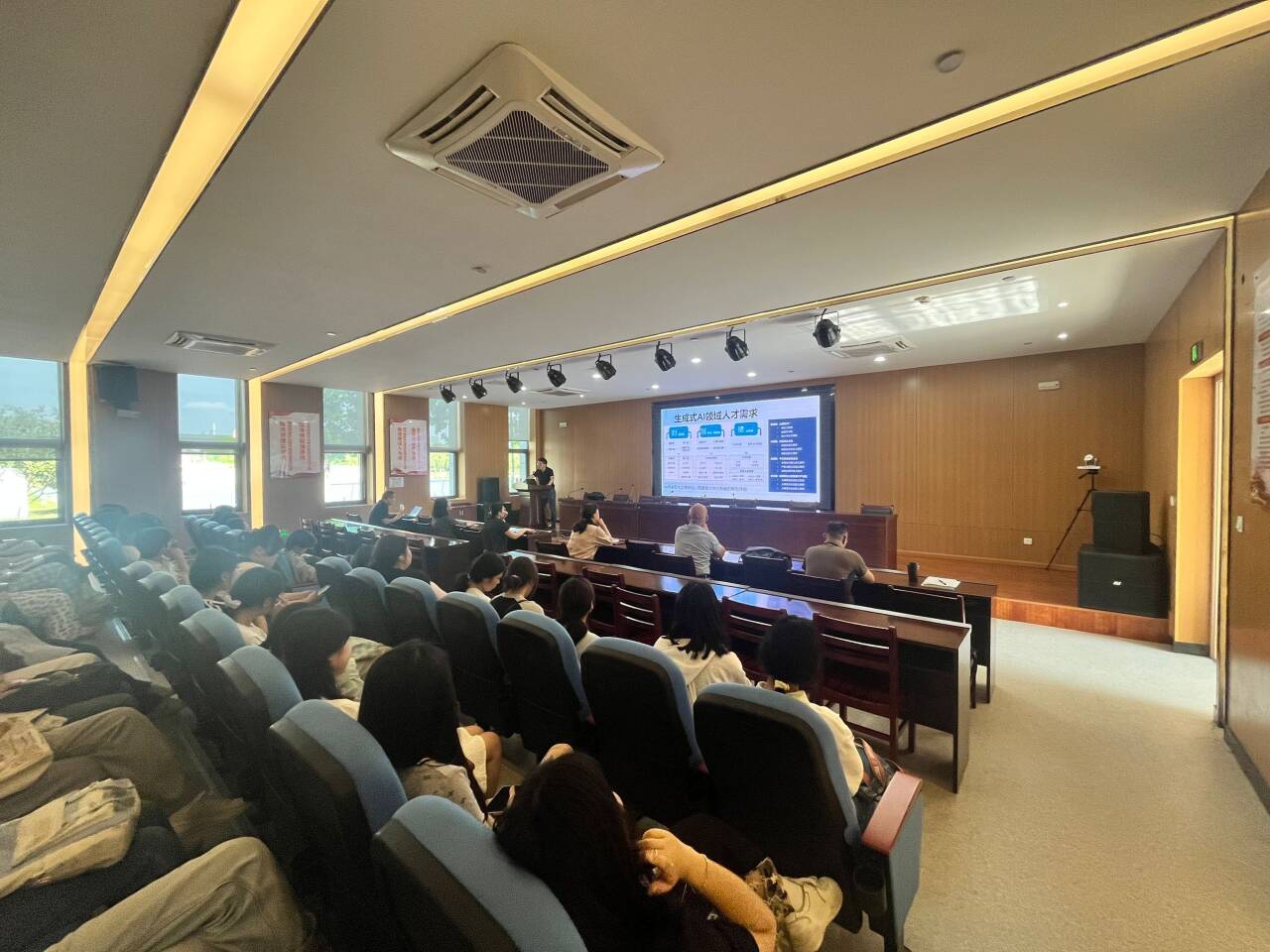 2025年5月20日,由万象城娱乐awc线路主办的“从产业到教育:AI技术如何落地场景应用”学术报告图书馆一楼报告厅举行。中联教育集团技术总监柳吉受邀主讲,赵红院长、付晓兰副院长及万象城娱乐awc线路部分师生参会。