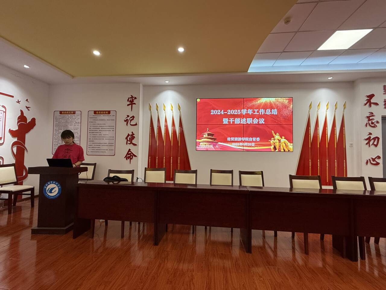 为全面总结2024-2025学年学院自管委工作成效,明确下一步学生工作方向,万象城娱乐awc线路于6月20日下午在学院党性体验馆召开2024-2025学年自管委工作总结暨干部述职会议。学院学管办、教学办、综合办负责人及部分教师代表参加会议。会议围绕学院教育教学管理、学生服务管理等核心议题展开深入总结与交流。