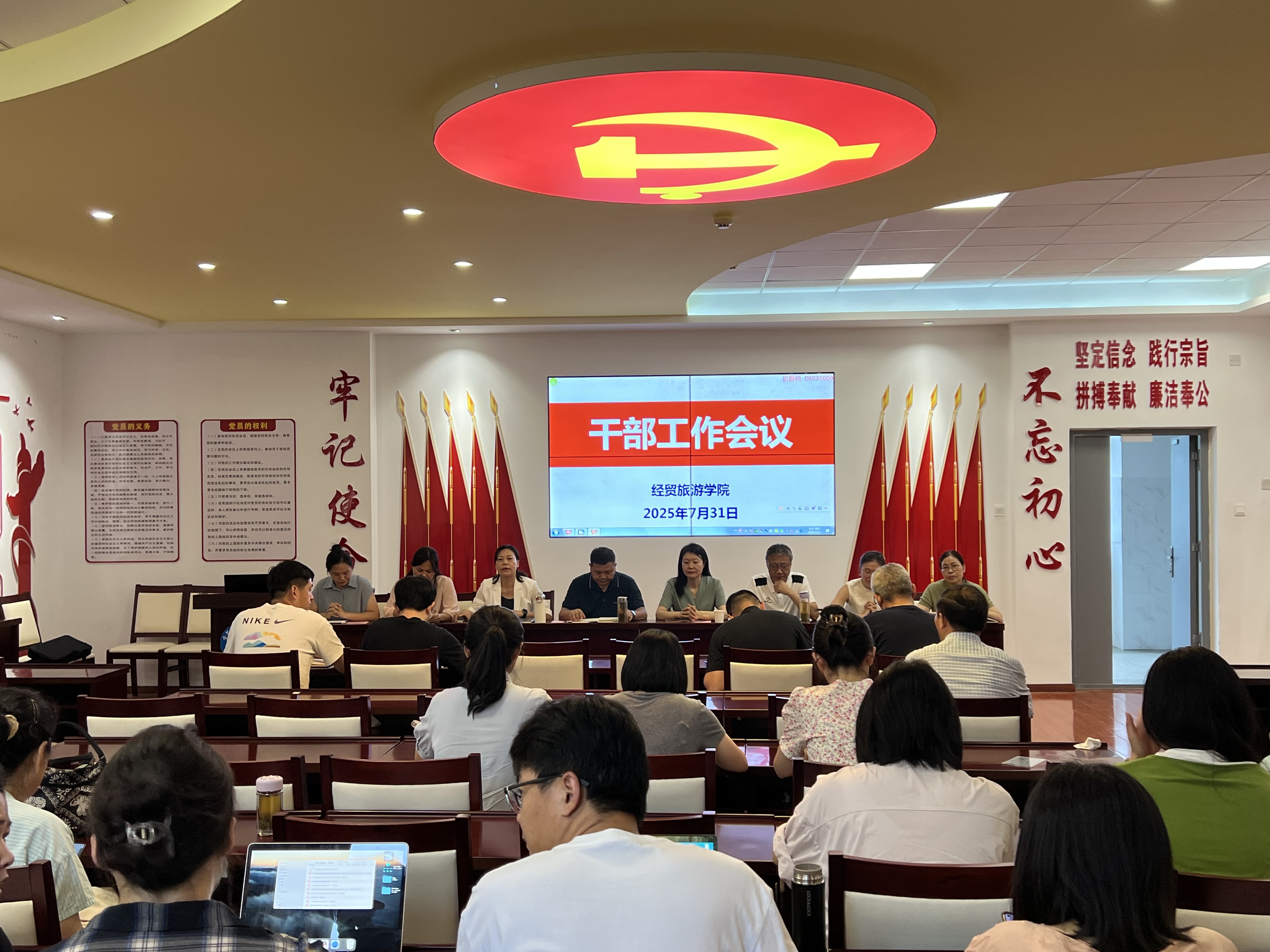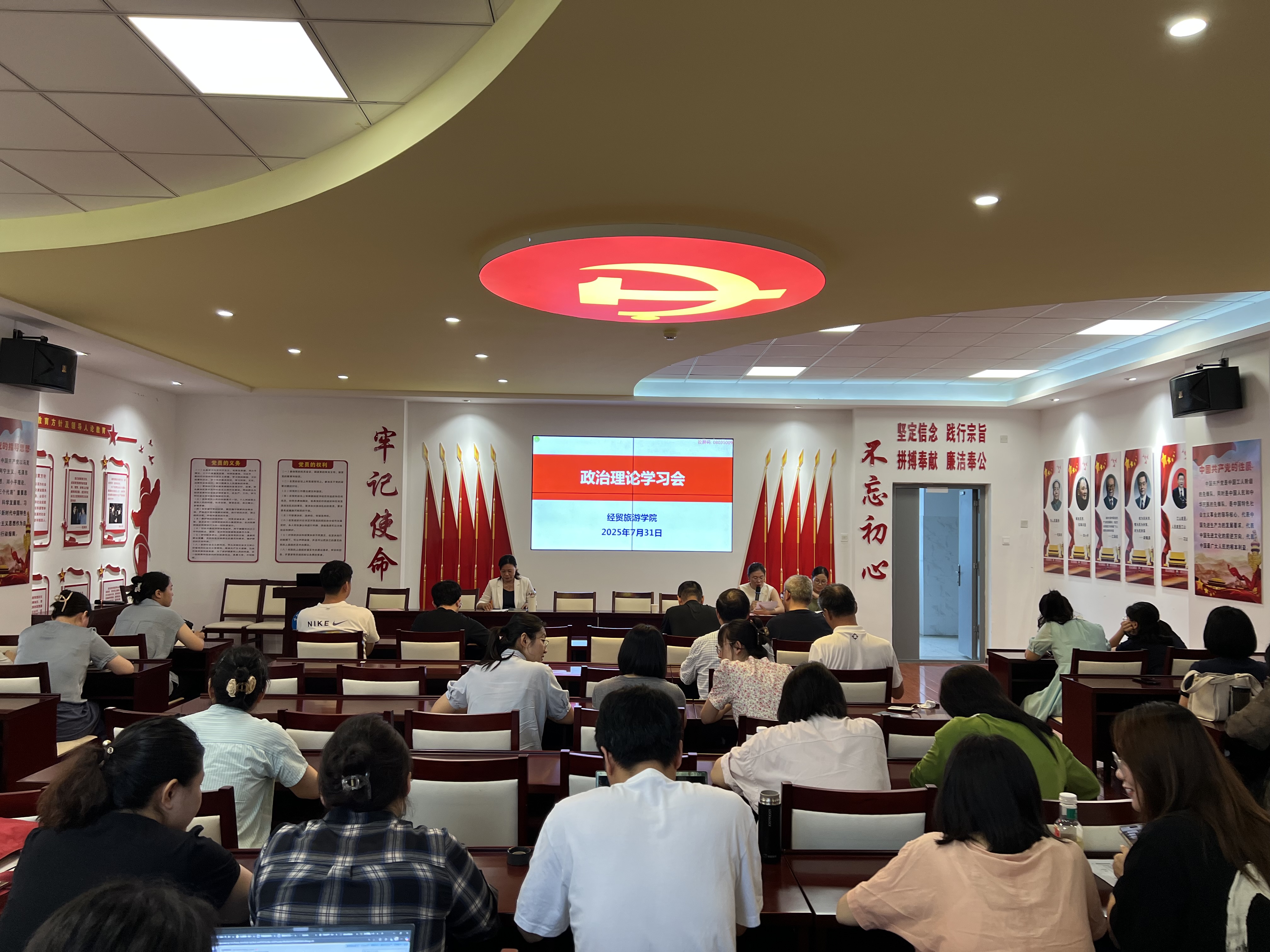 7月31日上午,万象城娱乐awc线路在党性体验馆召开政治理论学习会暨干部工作会议,全体教职工参加会议,会议由院长赵红主持。
