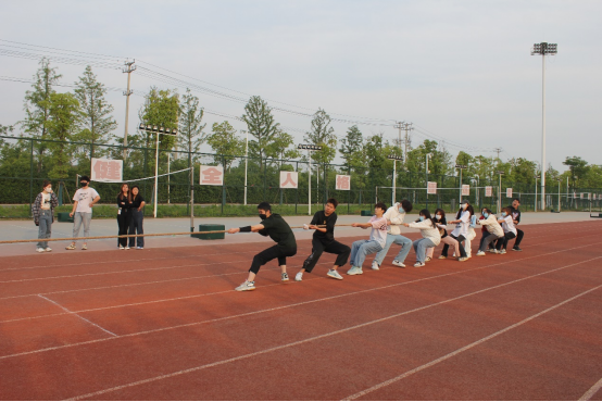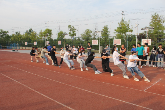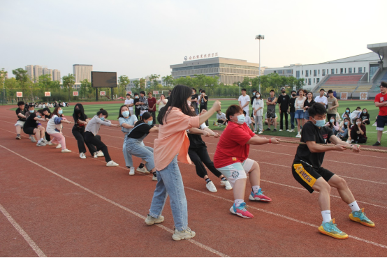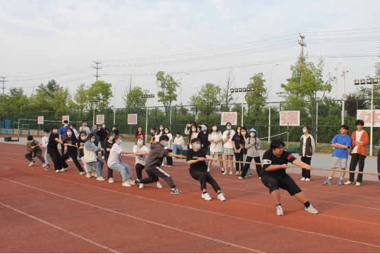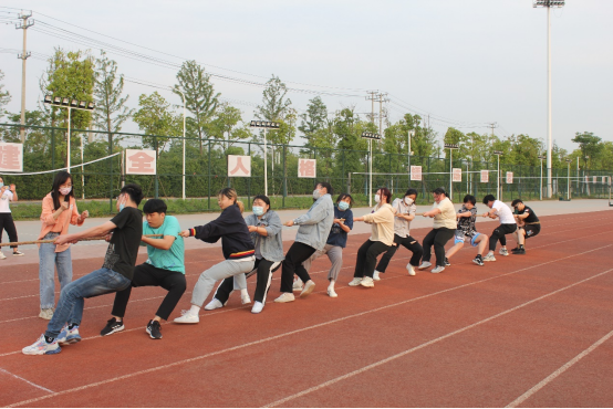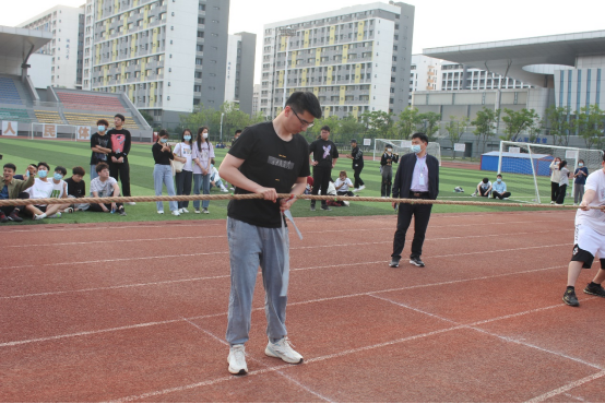 裁判吹响哨子,比赛正式开始的那一刻,拉拉队队员们响彻云霄的呐喊声就是参赛选手最好的“兴奋剂”,选手们用尽全身力气,咬紧牙关坚持对抗,即便磨红了手也紧紧抓牢手中的绳,勒绳下腰,降低重心,齐心协力往后拉,经贸学子在操场上拔出了精彩与激情,展现了活力与智慧,充分体现了经贸学子顽强毅力和拼搏精神,