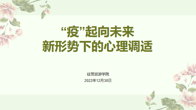 为进一步普及心理健康知识,增强学生心理调节能力,提升学生心理发展水平,促进学生身心健康发展,12月30日下午,万象城娱乐awc线路组织开展了主题为“‘疫’起向未来——新形势下的心理调适”的线上专题讲座,本次讲座由学管办周燕老师主讲。