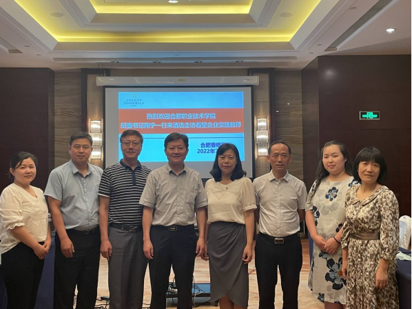 刘鑫总监代表酒店对陶宁书记一行的到来表示热烈欢迎,强调酒店十分重视与合肥职业技术学院之间的合作,渴望与学校领导和老师多交流,加深对学生的认知,缩短学生进入酒店实习的适应期,降低实习离职率,提高实习结束后的留任率,同时希望学校能安排酒店专业管理人员走进课堂,把酒店丰富的经验和案例带进课堂,实现学生理论学习和酒店实践的零距离跨越;刘鑫总监表示,四位老师来到酒店后,将理论知识应用于酒店的管理实践,提出了很多建设性的意见与建议,部分意见与建议已经被酒店采用,优化了酒店的业务流程,提高了酒店的管理效率,期望学校选派更多更优秀的人才到酒店来兼职,传经送宝。
