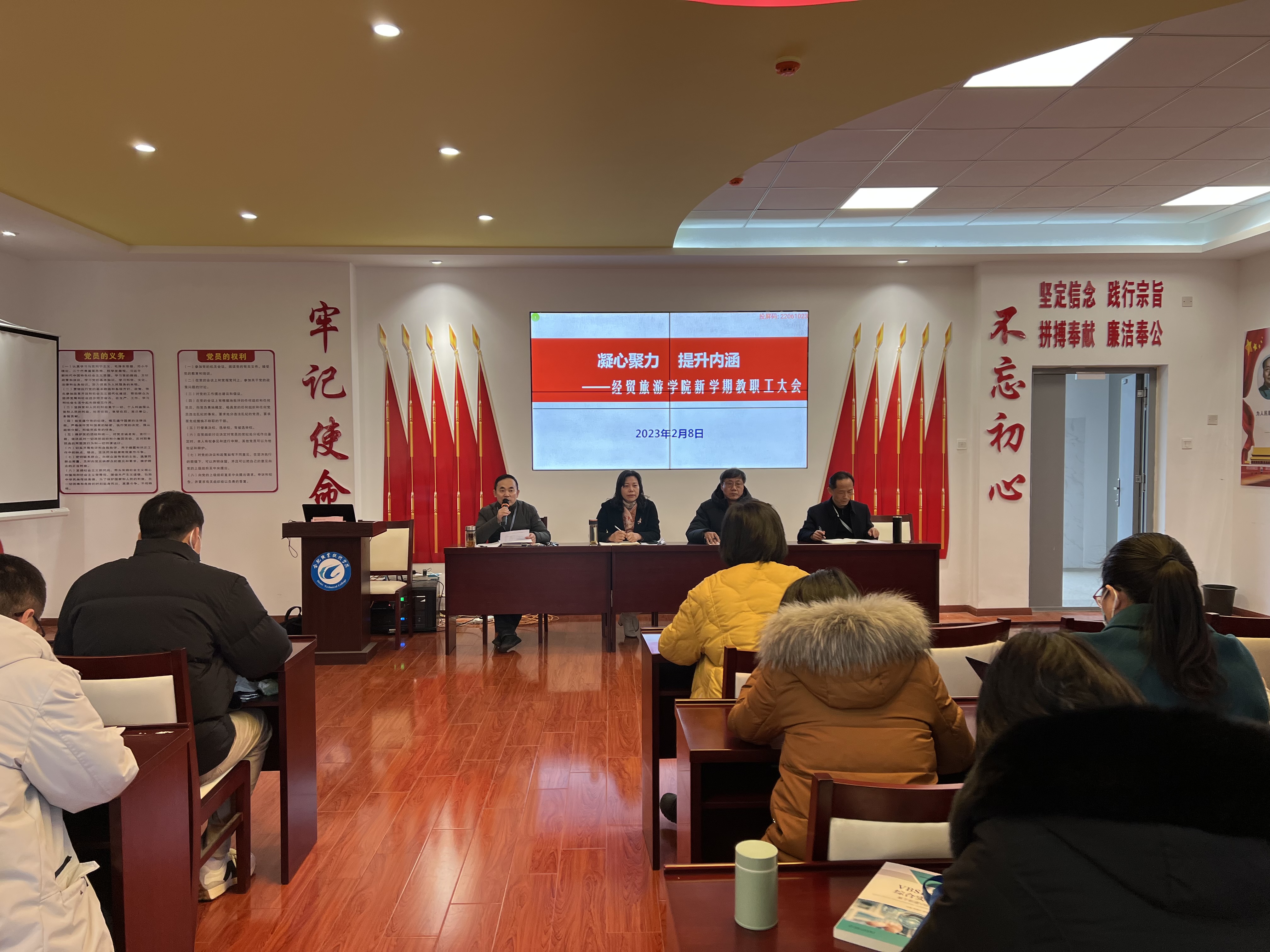 为推动新学期工作有序、高效开展,2月8日下午,万象城娱乐awc线路在党性体验馆召开了以“凝心聚力、提升内涵”为主题的教职工大会,学院党政和全体教职工参会,会议由副院长陈继林主持。