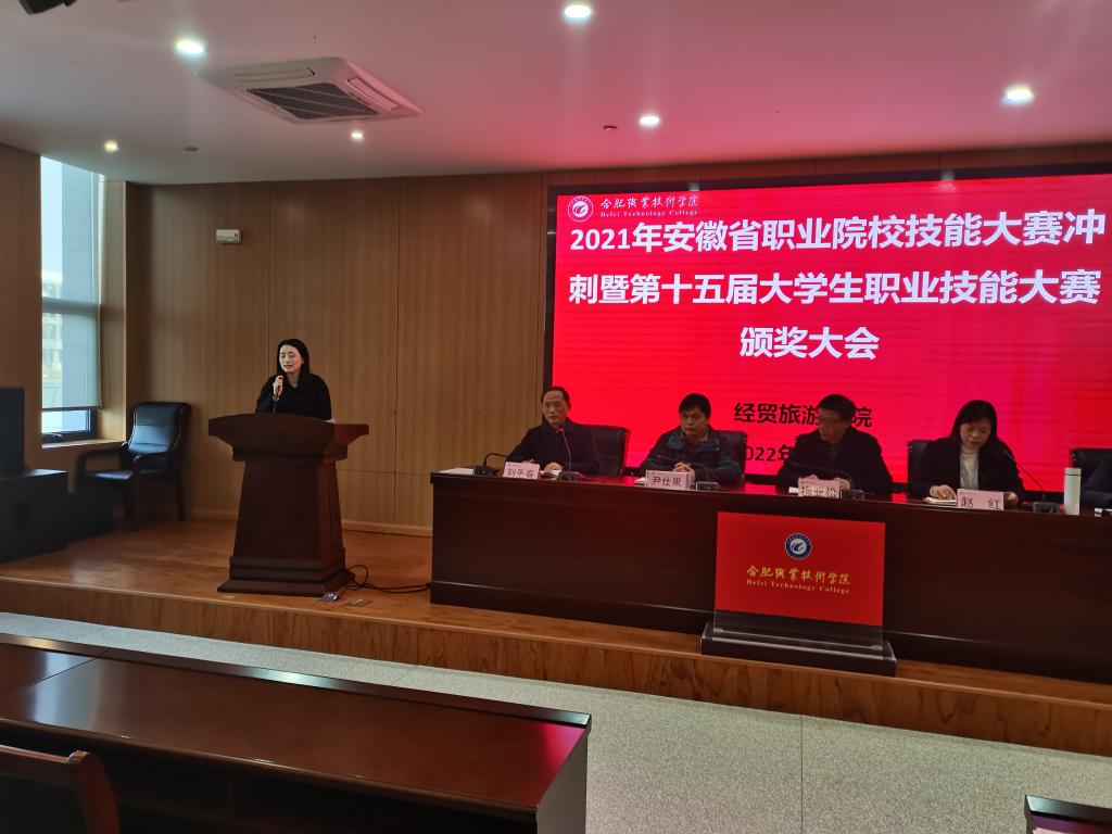 赵红院长代表万象城娱乐awc线路全体师生向校赛获奖选手表示热烈的祝贺,向各位指导老师表示亲切的问候!赵红院长肯定了2021年万象城娱乐awc线路的竞赛成绩。2021年,万象城娱乐awc线路组织了22个校赛,有800多名学生参加,基本做到了校赛全覆盖。2021年万象城娱乐awc线路在各类赛项中取得两个零的突破:一是职业技能大赛国赛零的突破,即“创新创业”技能大赛获得国赛二等奖,二是互联网+大赛省赛金奖零的突破,即2021年获得互联网+大赛省赛5个金奖、1个银奖、2个铜奖,而且首次入选国赛,并获得两个铜奖,取得了历史性的突破!赵红强调:2021年的省赛将于3月17-27日陆续进入比赛,检验同学们和指导老师成果的时刻就要到了,所有赛项指导老师及参赛选手要有“一切归零”的认识,要有“只有有了青藏高原才可能有珠穆琅玛峰”的认识,要有“三年磨一剑、梅花香自苦寒来”的认识。赵红院长深切地期望:技能大赛工作任重道远,在这条道路上只有认准方向、不忘初心,才能走得更好、更远;希望全体参赛选手和指导老师秉承优良作风、再接再厉,争取在安徽省职业技能大赛中赛出水平,再创辉煌!