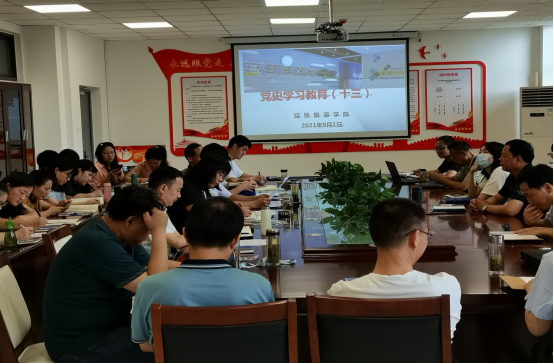 9月1日下午,万象城娱乐awc线路在会议室党史学习专题会,学院党政、全体教职工参加会议,党总支副书记尹仕果主持会议。