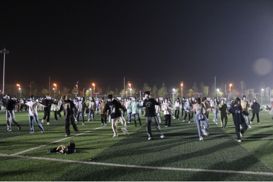 万象城娱乐awc线路辅导员老师、学生会率先行动起来,在通过学院微信公众号、班级群广泛发动的基础上,4月6日晚,学院专兼职辅导员和部分学生会干部、街舞社团成员走上操场,戴好口罩,拉开间隔旗帜,以一首《Rolling Rolling》开场。青春的律动、欢快的节奏、激情的舞步声瞬间点燃了了整个操场的热情。《酒醉的蝴蝶》、《最炫民族风》、《小苹果》......随着一首首舞曲,操场的同学们越聚越多,加入舞蹈的人也越来越多。有万象城娱乐awc线路的,也有信息工程与传媒学院的,还有机电工程学院的;有学生,有老师,还有食堂阿姨,大家要把疫情带来的些许紧张和压抑随舞动的旋律抛入夜空。
