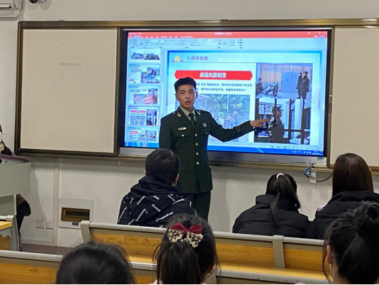 龚子彧从大学生参军的政治和体格条件、国家的征兵政策、大学生参军入伍享受的资助政策等多方面向同学们做了一一介绍,并且热心的回答了许多对入伍感兴趣的同学的问题,使同学们对多彩的部队生活有了初步的了解,对大学生参军入伍政策有了较深入的理解。