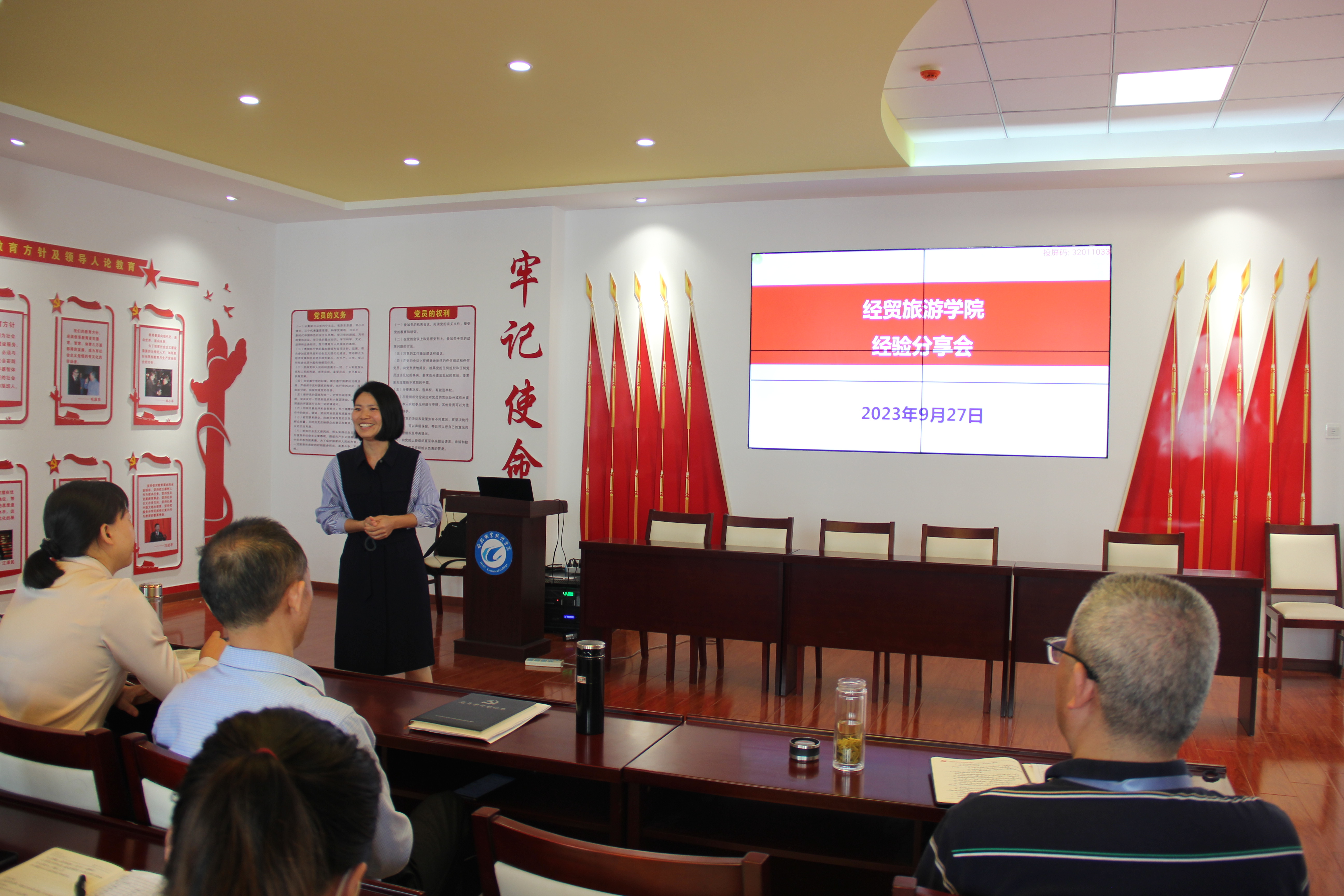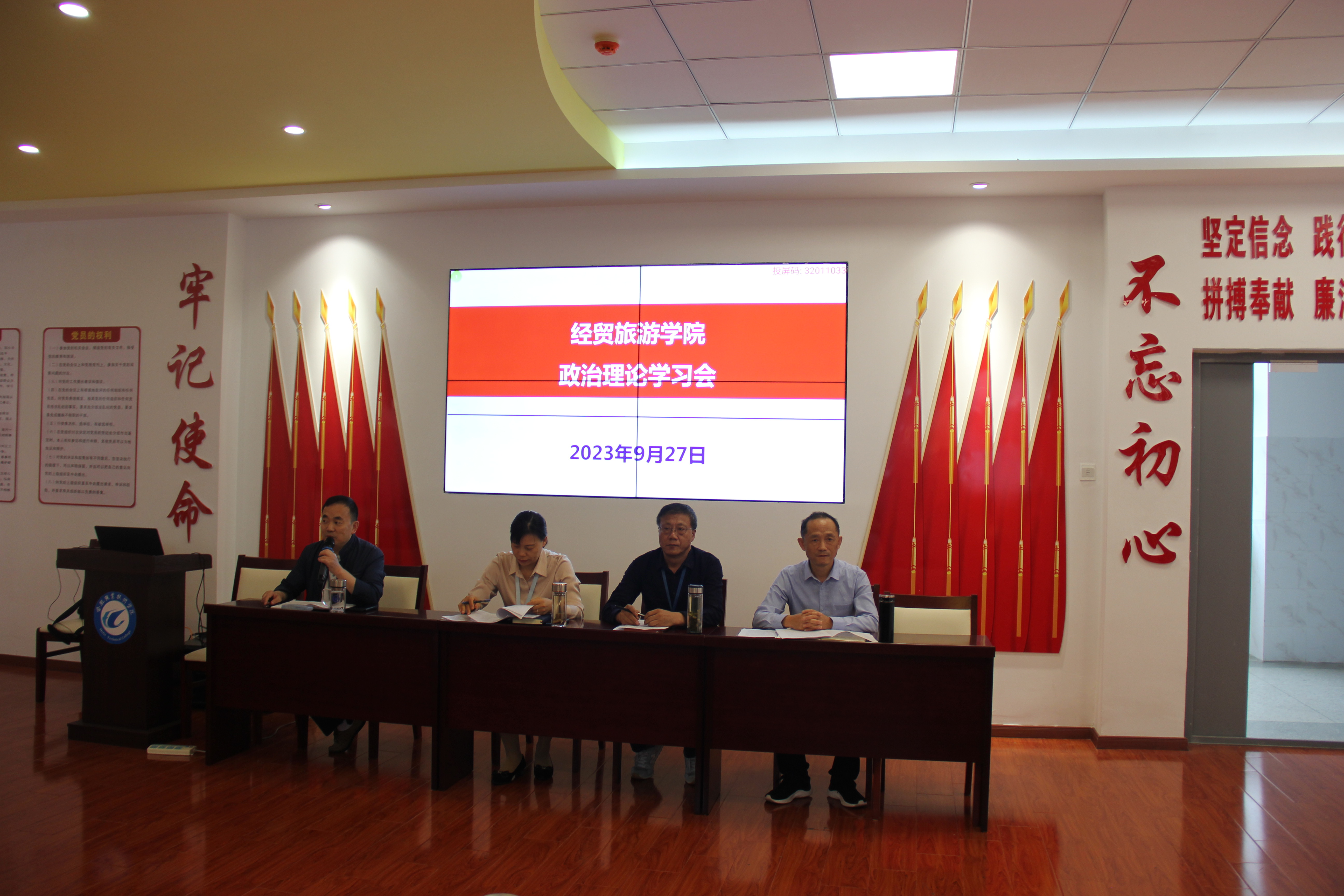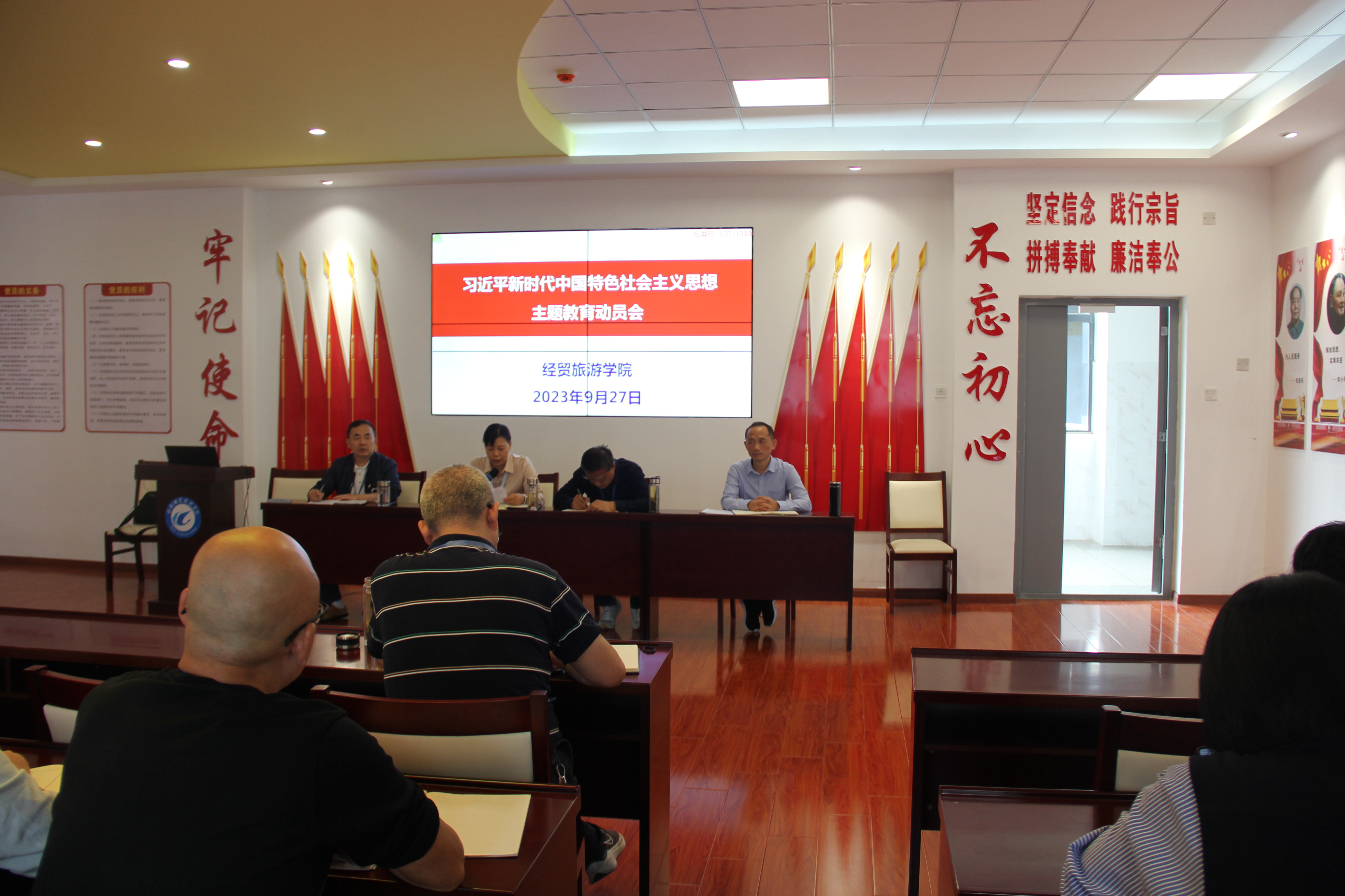 2023年9月27日下午,万象城娱乐awc线路在党性体验馆召开政治理论学习会暨学习贯彻习近平新时代中国特色社会主义思想主题教育动员大会。学院党政和全体教职工参加会议,会议由副院长陈继林主持。