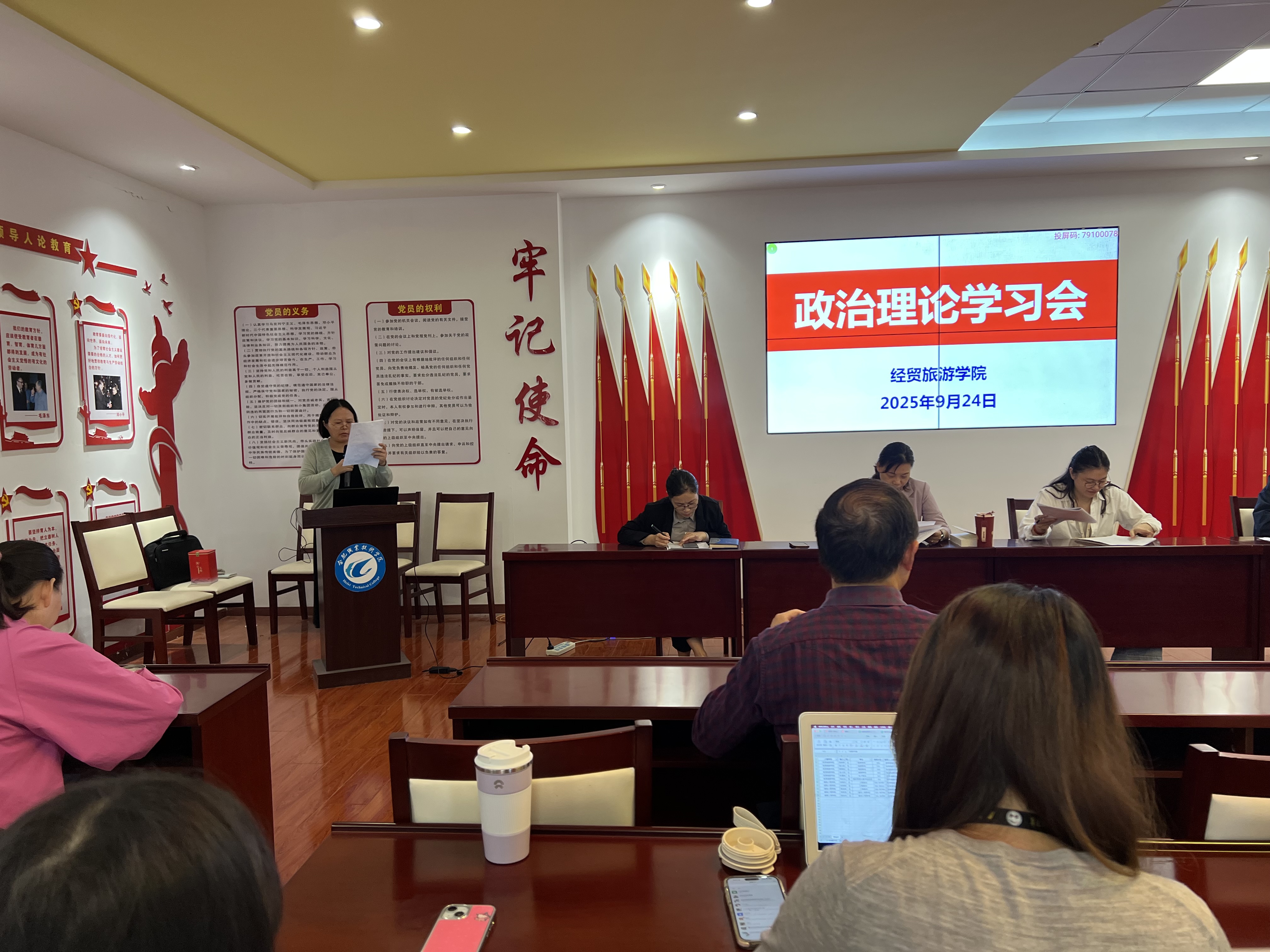9月24日下午,万象城娱乐awc线路在党性体验馆召开政治理论学习会暨教职工大会,全体教职工参加会议,会议由副院长付晓兰主持。