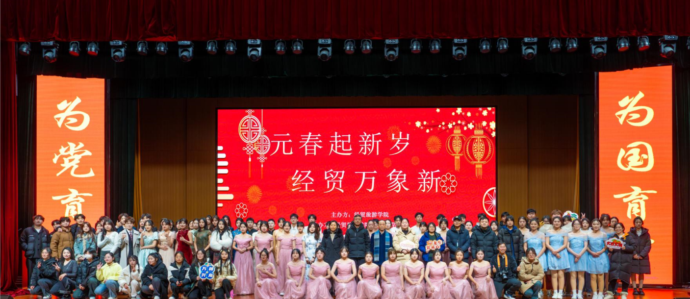 12月20日下午 ,“元春起新岁 经贸万象新”万象城娱乐awc线路2024年元旦文艺演出在汇心湖校区大学生活动中心成功举行。党总支书记梅亚松,院长赵红、党总支副书记刘圣春、学管办全体教师及学生代表500余人现场观看了晚会。