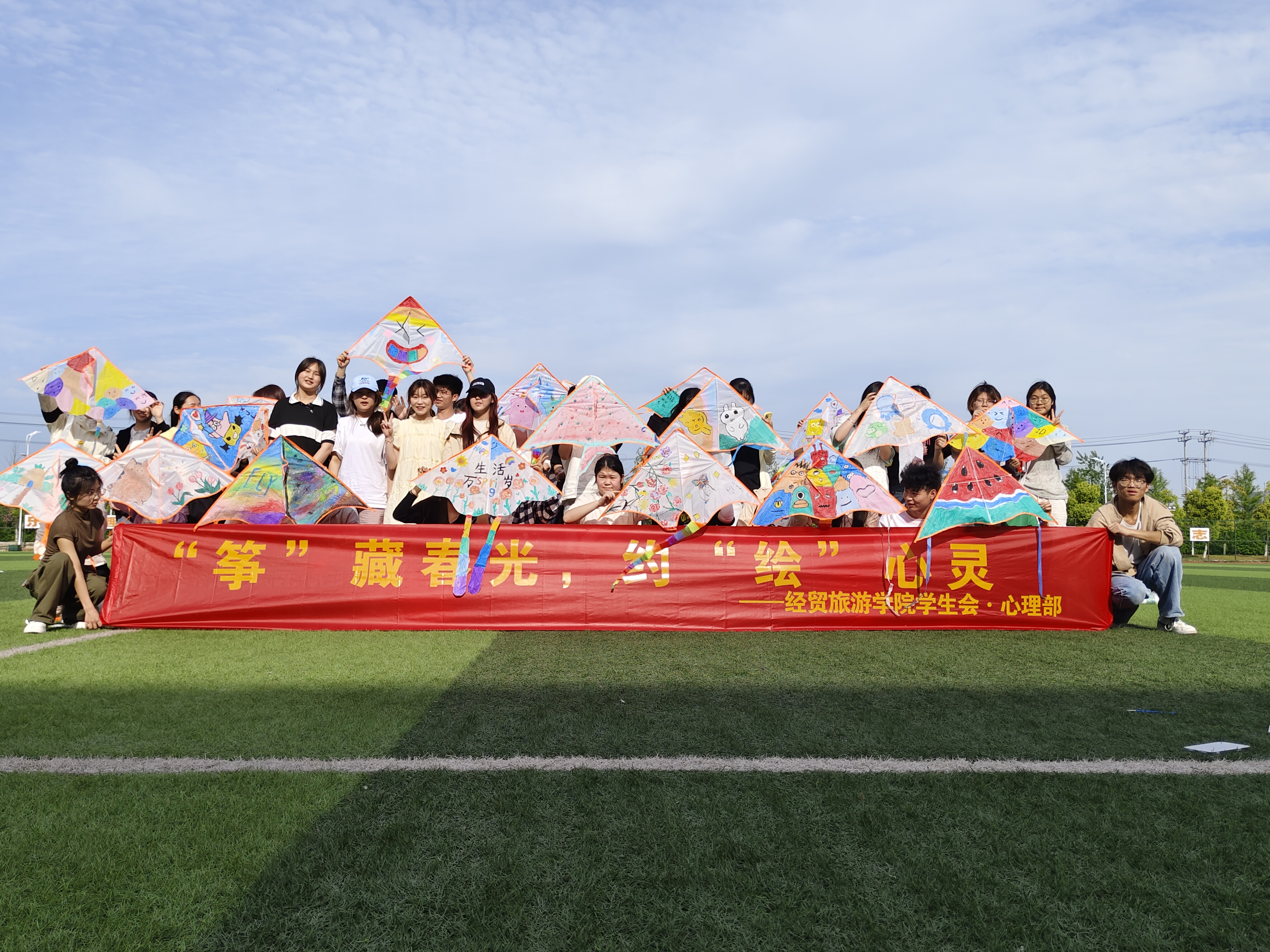 万象城娱乐awc线路学生会·心理部于4月24日下午举办了以“‘筝’藏春光,约‘绘’心灵”主题DIY风筝放飞活动。