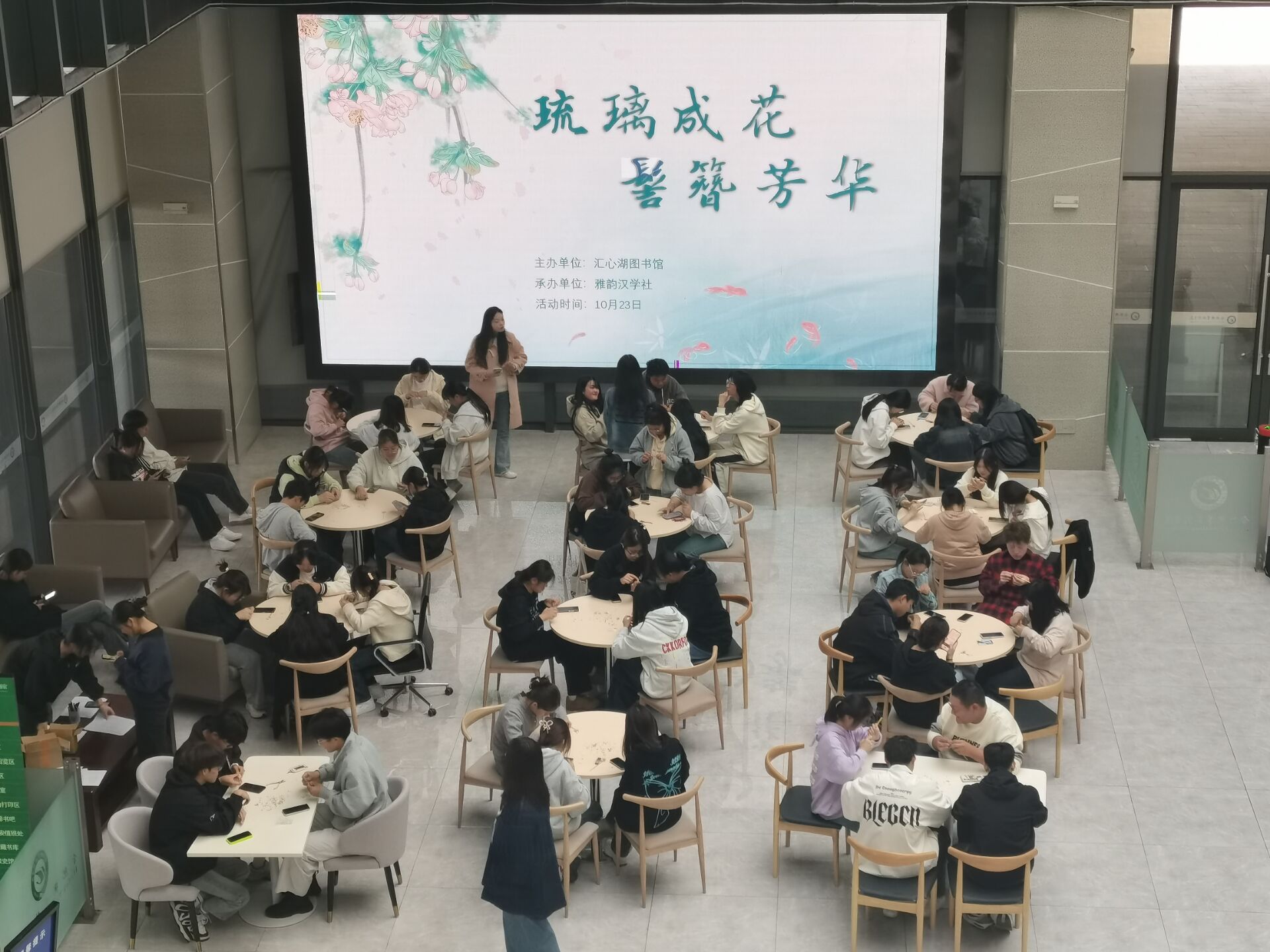 为传承和弘扬中华传统文化,丰富广大在校同学文化生活,我校万象城娱乐awc线路雅韵汉学社于10月23日下午在汇心湖校区图书馆二楼举办了一场别开生面的“琉璃成花,髻簪芳华”活动。