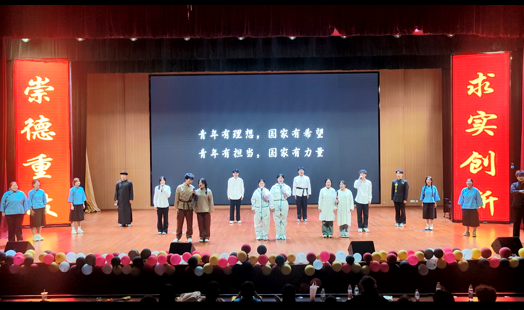晚会在一段满载2023级实习生校园温馨回忆的暖场视频中拉开序幕。随后,街舞社带来的《Fighting》以动感舞姿点燃全场,传递出青年学子积极向上、拼搏奋斗的青春力量;院团总支倾情演绎的舞台剧《何为青年,青年何为》成为晚会亮点,演员们通过精湛表演和深刻对白,生动诠释了新时代青年的责任与担当,引发在场师生的强烈共鸣与深度思考。幕布剧《我们未完待续的大学》以新颖独特的形式,艺术化再现了同学们在合职度过的难忘点滴。经典歌曲《海阔天空》的激昂旋律与豪迈歌词,唱响了经贸学子勇往直前、追逐梦想的坚定信念。拉丁舞《一程山路》则以优雅深情的舞步,描绘出一幅关于青春成长与探索未来的动人画卷……
