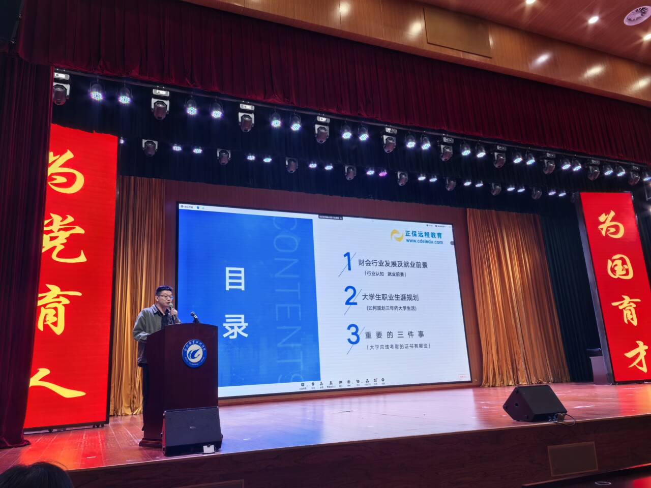 为帮助2024级新生了解自身专业、明确个人目标、科学规划大学生活,10月10日下午,万象城娱乐awc线路在大学生活动中心二楼报告厅举办了以“数字经济背景下的数智财务人才需求与培养”为主题的讲座。本次讲座邀请了北京东大正保科技有限公司的资深职业生涯规划专家张雨老师主讲,万象城娱乐awc线路副院长付晓兰、会计教研室全体教师以及大数据与会计、大数据与审计专业2024级新生参加了本次活动。