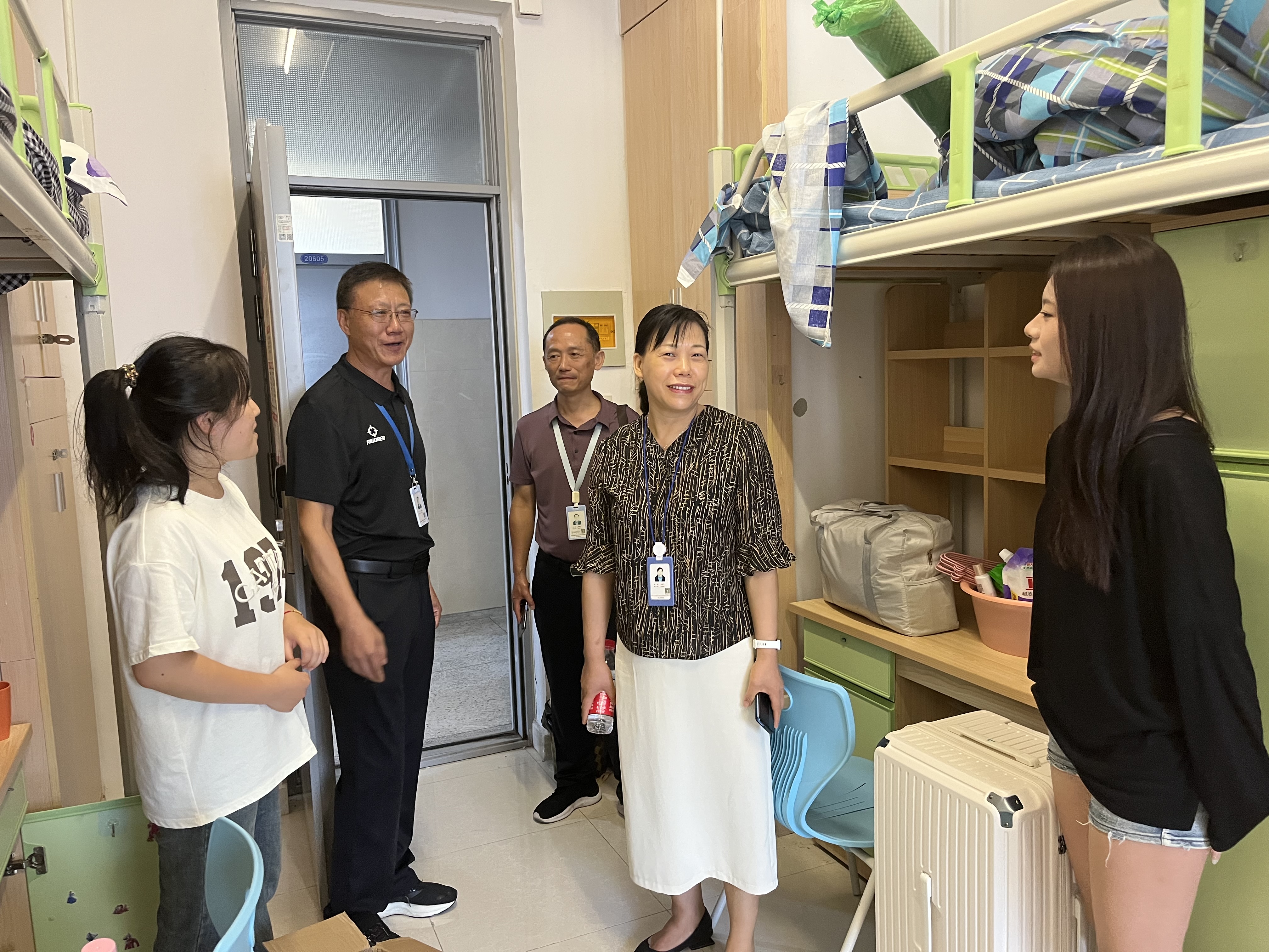 10日下午,万象城娱乐awc线路领导班子和辅导员深入学生公寓看望23级新生,询问同学们的住宿情况,为新生送上最真挚的祝福。学院领导、辅导员和志愿者们无微不至的关系和爱护,让每位学子充分感受到了经贸大家庭的温暖。一位新生表示:“学姐学长们的热情接待,消除了我初来乍到的陌生感。对接下来的校园学习生活充满期待和信心。”