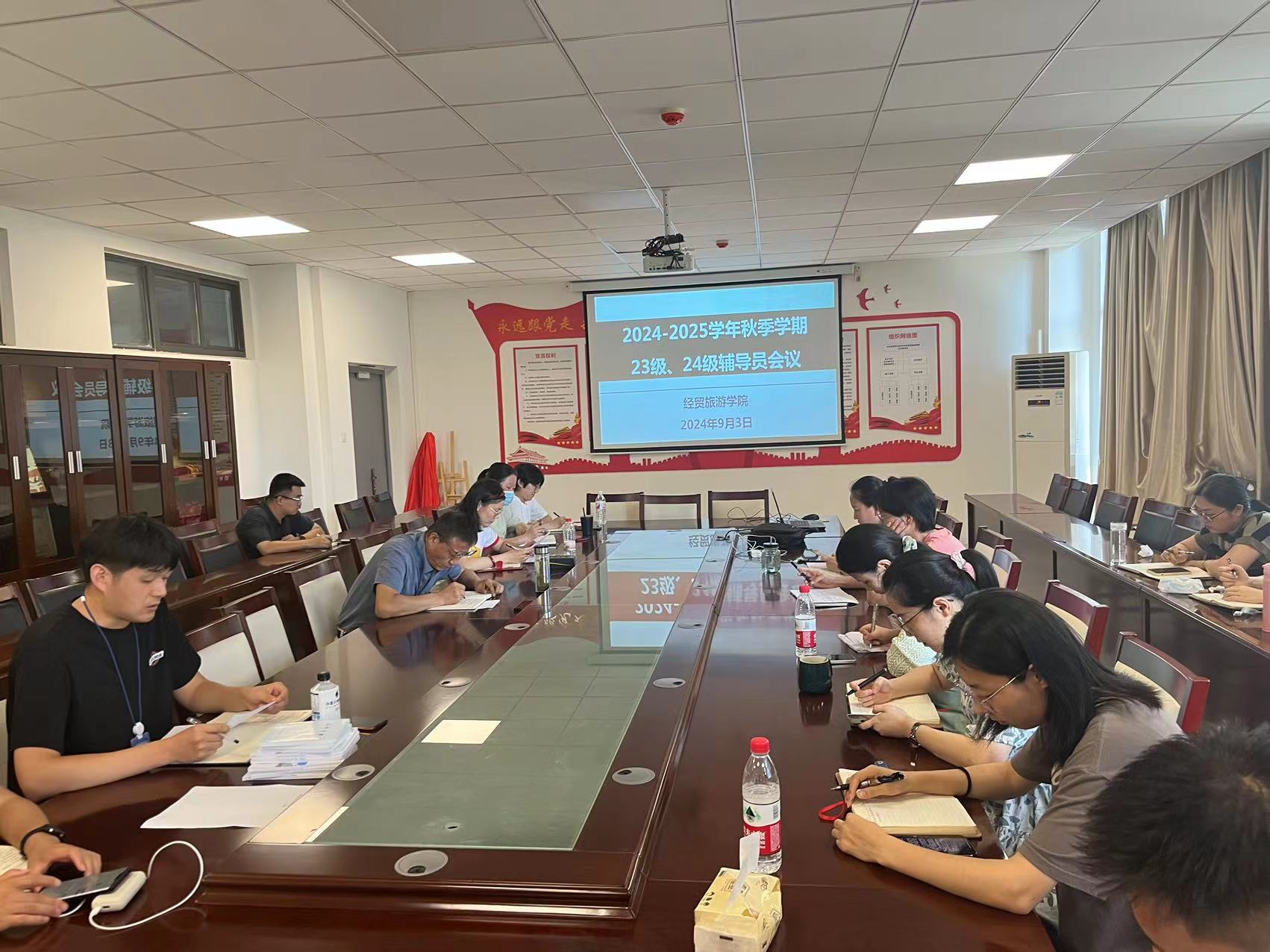 为做好新学年秋季学期工作,9月3号下午,万象城娱乐awc线路在经贸楼3楼会议室召开2023级、2024级班级辅导员会议。会议由学院学管办主任王明明主持,学院党总支书记梅亚松、副书记赵倩倩、学管办全体专职辅导员、全体2023级、2024级班级辅导员,2024级新生班级学生助理参加了此次会议。