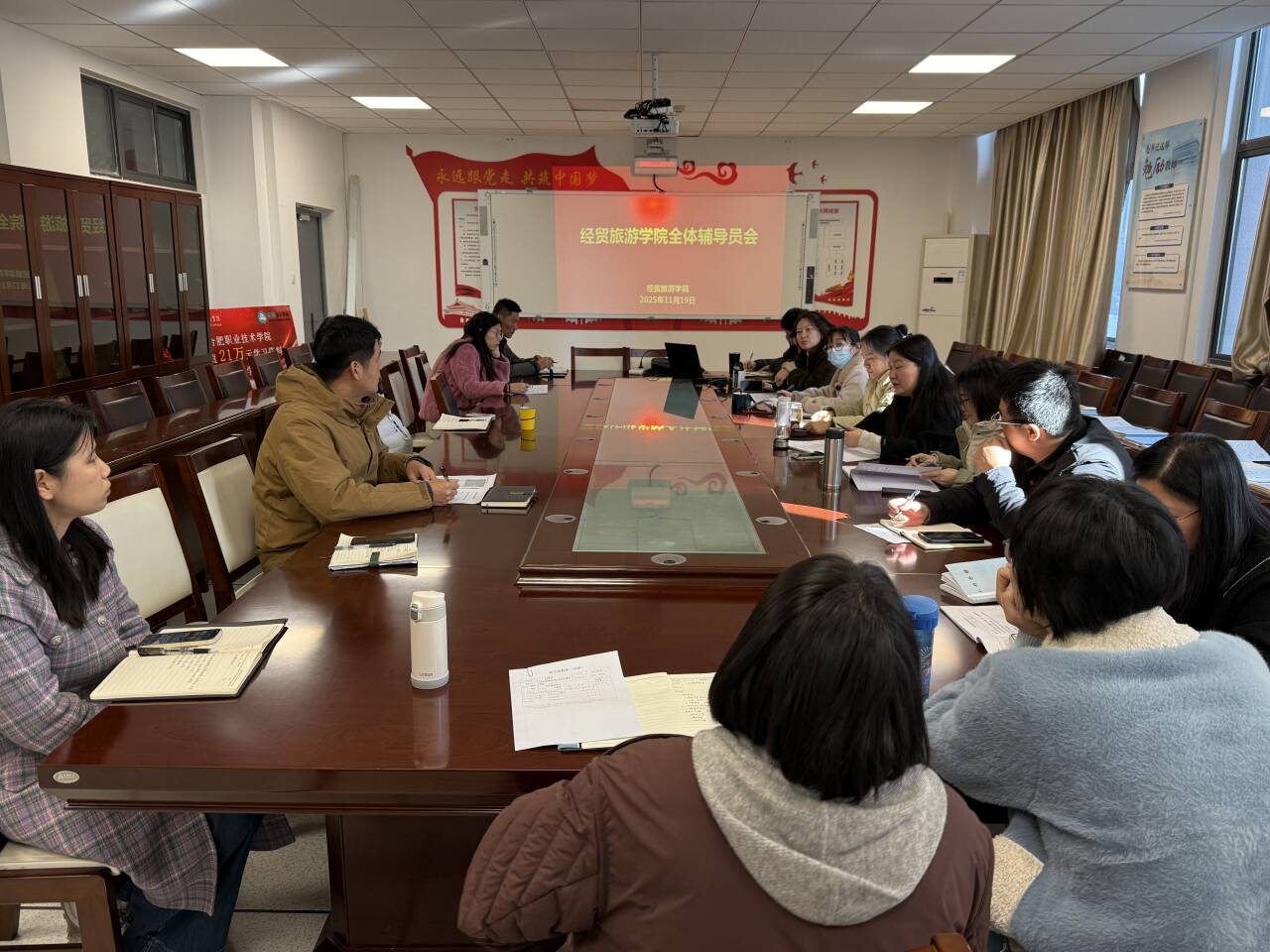 为进一步加强学生思想政治教育,提升学生日常管理水平,全面总结2025-2026学年第一学期过半以来的学生管理工作成效,万象城娱乐awc线路于2025年11月19日下午在学院305会议室召开全体辅导员工作会议。学院全体专兼职辅导员及教学办负责实习工作教师参加了会议。会议由学院学生管理办公室组织,围绕学风建设、日常管理、心理健康教育、资助工作、党员发展、校园安全与法制教育等重点工作进行了部署与研讨。