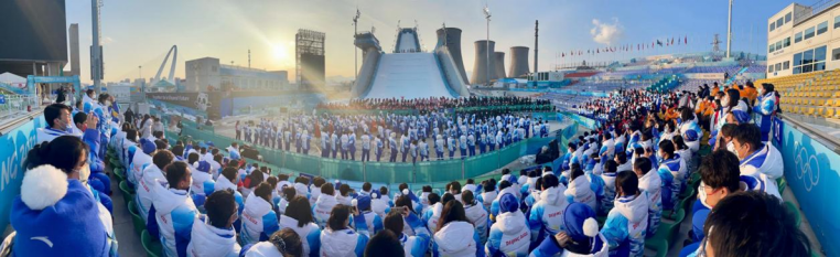 在冬奥村,习近平总书记曾同来自高校的青年志愿者亲切交流:“你们参与其中,虽辛苦,但光荣、自豪而幸福。给各国参赛人员讲述一个古老而现代的北京,让他们感受到中国人民的热情好客,这会是一段难忘的人生经历。”