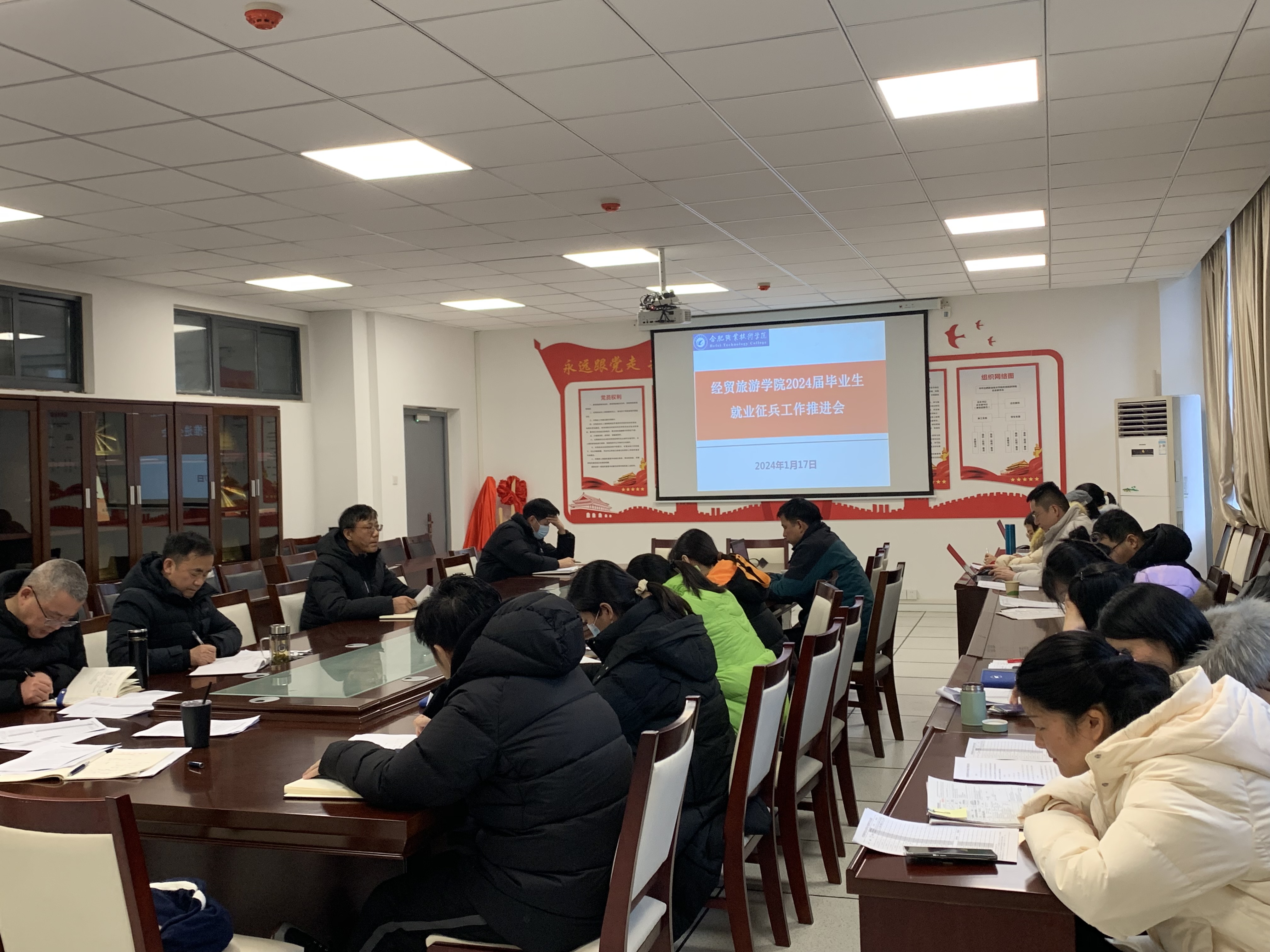 1月17日下午,万象城娱乐awc线路在经贸楼党员会议室召开2024届毕业生就业征兵工作推进会,学院党总支书记梅亚松、副院长陈继林、综合办主任高荣明、各教研室主任、全体2024届毕业班辅导员等老师参加此次会议。