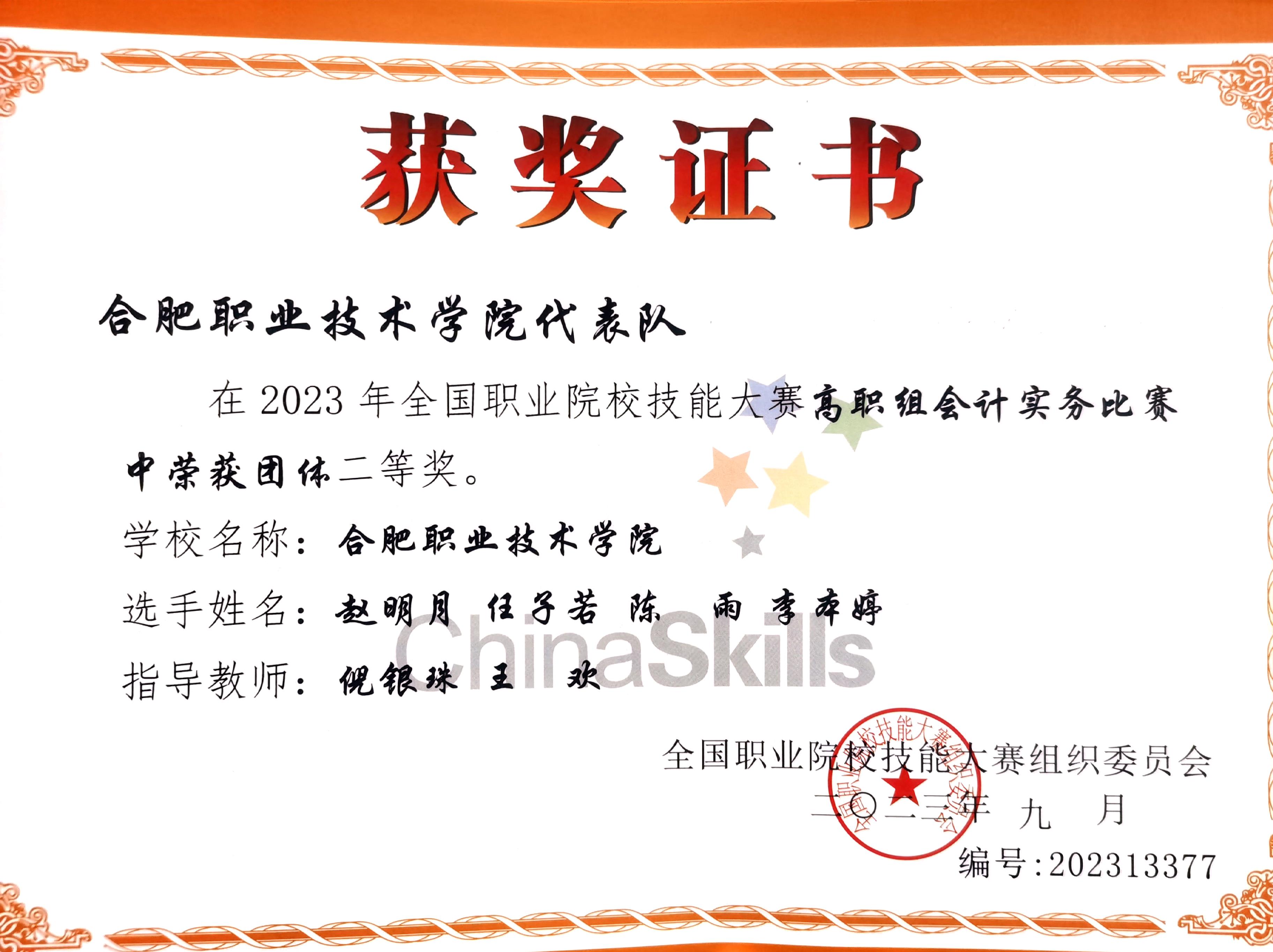全国职业技能大赛是新中国成立以来举办的赛事规格最高、竞赛项目最多、参赛规模最大、技能水平最高、影响范围最广的综合性国家职业技能赛事。本次我校代表队首次闯入会计实务赛项国赛阶段便取得了二等奖的好成绩,实现了在此项竞赛中的新突破。本次比赛成绩的取得,离不开校院两级领导对于学科竞赛工作的支持,也是学校坚持“岗课赛证”融通教育教学改革成果的有力展现,万象城娱乐awc线路将继续坚持“以赛促建”、“以赛促改”、“以赛促学”,激发学生学习专业知识和训练实践技能的积极性、主动性,携手共进,再创佳绩!