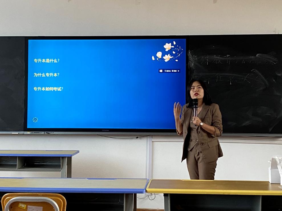 首先,高翠对爱尔信专升本教育集团宣讲团作欢迎致辞,强调专升本的意义和讲座的纪律要求,希望通过此次讲座,同学们能够对自己的职业规划有更明确的目标。