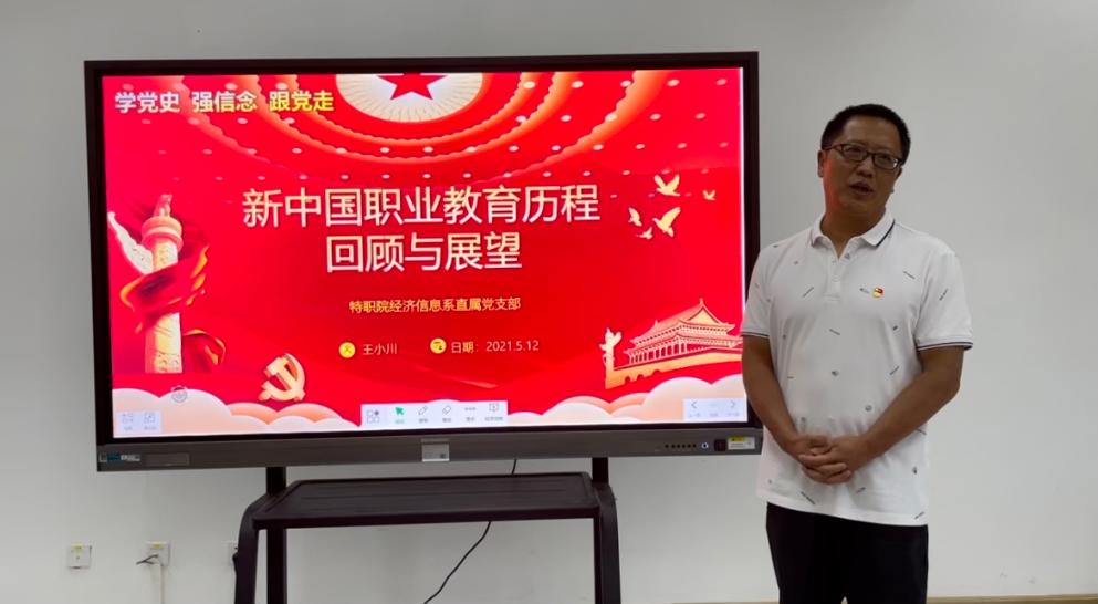2021年5月12日下午3经济信息系党支部在实训楼206召开书记讲党课活动会议主题为“学党史 强信念 跟党走————新中国职业教育历程回顾与展望支部党员教师、积极分子和学生代表参加专题学习。