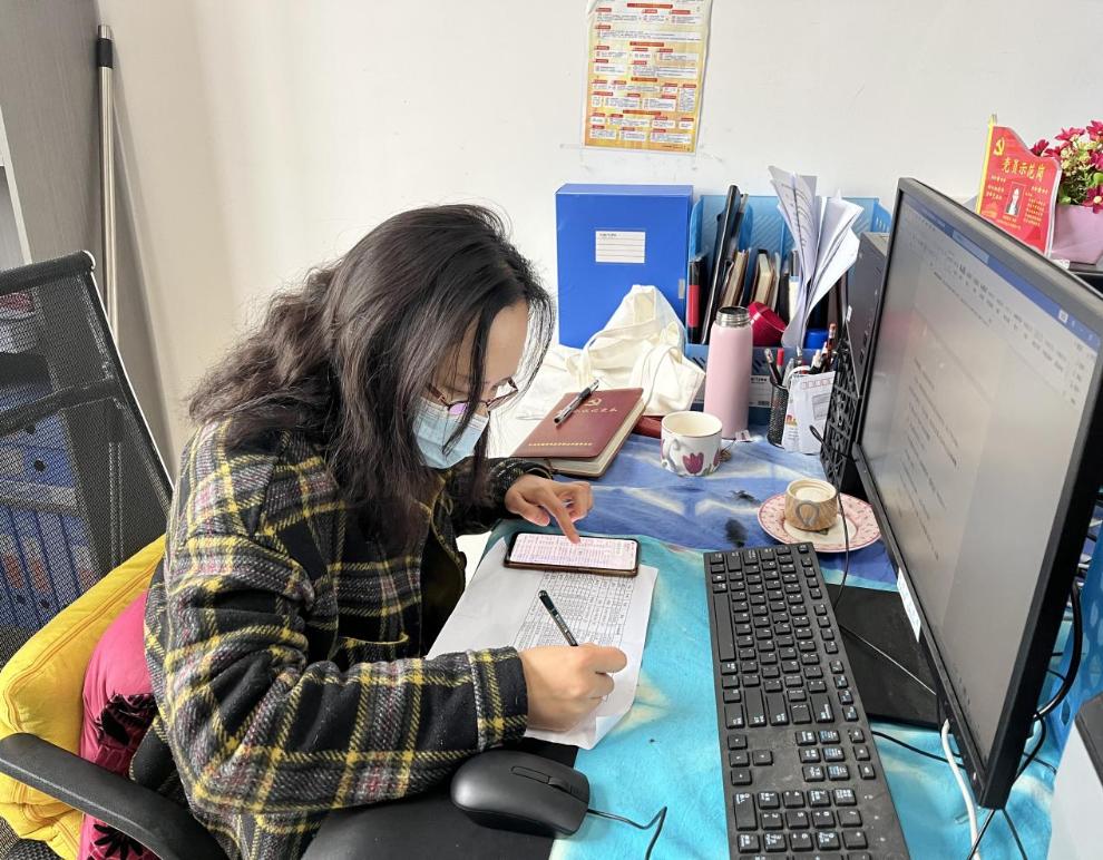图为党员高翠统计学生将健康码、行程码信息