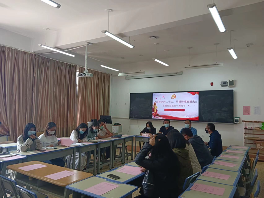 秋风飒爽,硕果飘香,在第38个教师节即将到来之际,经济信息系党支部于2022年9月8日,举行以“迎接党的二十大 培根铸魂育新人”为主题的第38个教师节庆祝活动暨经济信息系党支部主题党日活动。学院纪委书记刘亚彬同志,经济信息系党支部全体党员、全系教职工,发展对象和入党积极分子、学生代表参加了此次活动。