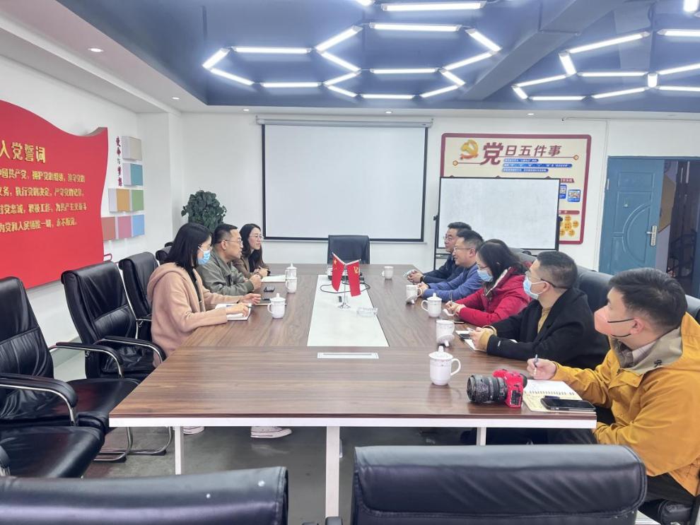 调研过程中,产业园党支部书记巴琴介绍了园区整体情况,她提到目前电子商务园区整合了多家企业入驻,结合传统电商和跨境电商等多方面合作,目的是打通电商从源头到终端的所有渠道,突出目前新媒体的优势,打造新时代的电子商务产业。