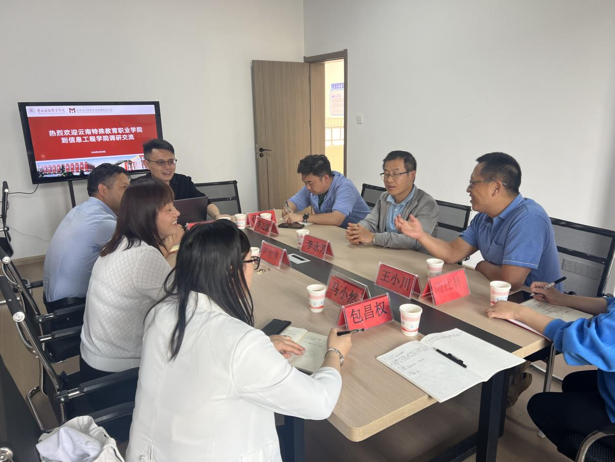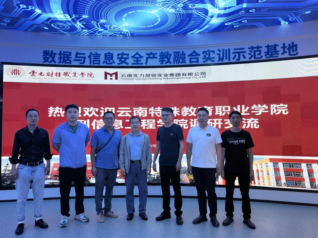 为深化校校合作,拓宽办学视野,探讨校企合作和产教融合,4月29日,KY开元集团官网副校长李永芳一行人前往云南财经职业学院信息工程学院交流学习,云南财经职业学院副校长尹湘萍、教务处副处长马小然、信息工程学院院长黎乾坤以及云南实力慧铭实业集团总经理刘彬、助理陈俊协同数据安全产业学院教学团队成员参与此次交流。