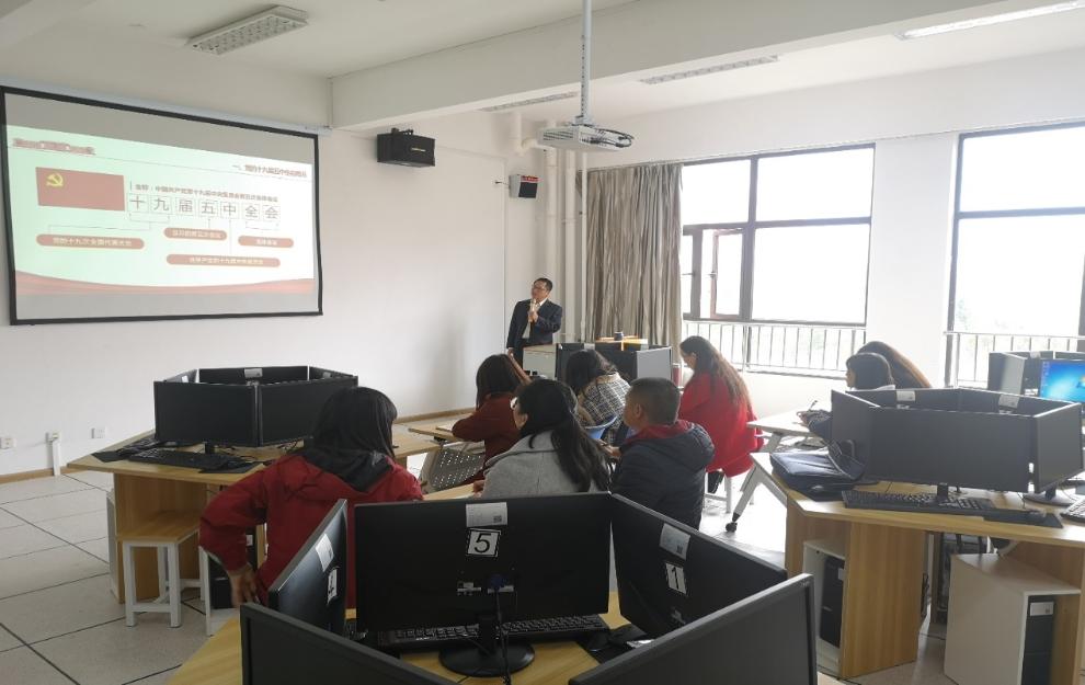 为学习贯彻好党的十九届五中全会精神,2020年11月30日,KY开元集团官网经济信息系直属党支部组织全体党员在实训楼206开展专题党课,支部书记王小川同志以“学习党的十九届五中全会精神”为题讲授专题党课,全体党员、入党积极分子参加了学习。