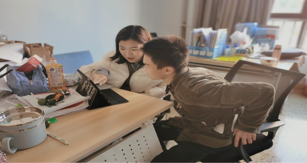 图为白伟霖同学在老师的指导下认真学习