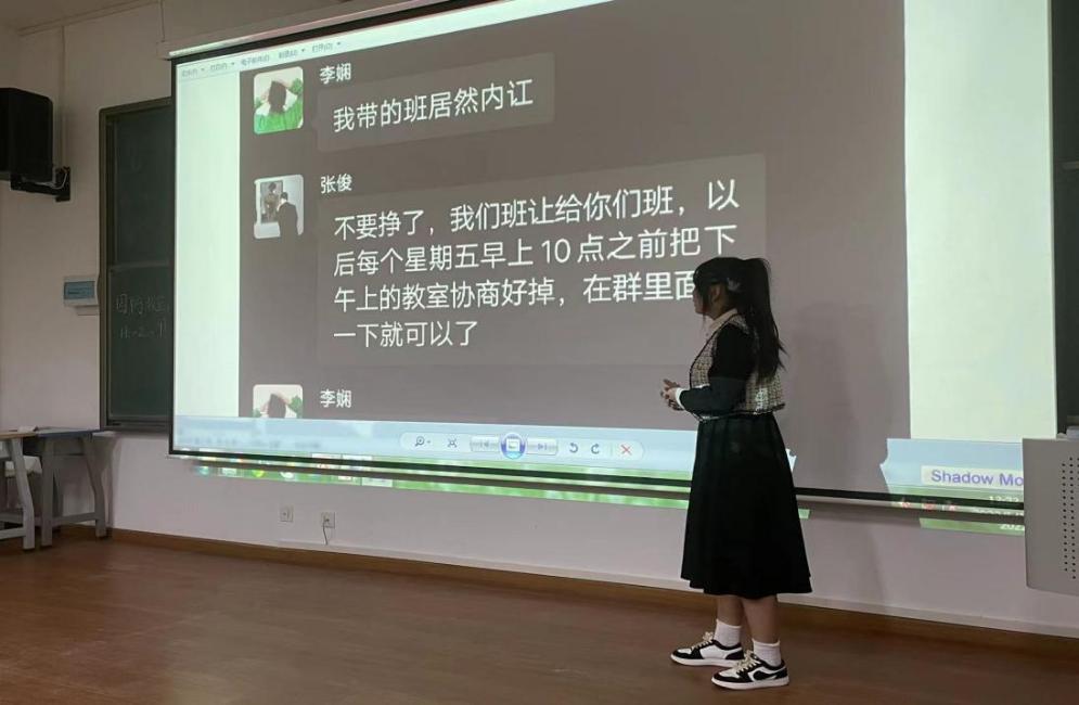 本次主办班级为:T21移动应用与开发、T21大数据与会计一班 在辅导员李娴老师的带领下进入本次主题为《人际交往关系》的公开班委会,首先由T21移动应用与开发杨威同学演讲对人际交往理解的解读,通过生动形象的语言,对人际交往的运用、人际交往的方式方法、人际交往的重要性几个方面为在场的同学分享了自己理解到的深刻观点和事例进行分享学习。T21移动应用与开发班廖良姣同学通过本班发生的真实事例再现解读,诙谐生动的语气再现出同学之间的言语摩擦,一些有趣的小插曲,以及辅导员在事例中做出的指正教育等,通过廖良姣同学的再现解读构出画面栩栩如生,引来在场师生一片欢笑。欢笑之余由T21大数据与会计一班欧阳雅婷同学做出以旁观者第一视角身处事例发生的感受与分享,提炼出关于本次人际交往关系的理解和对同学们在本次公开班委会学习的成果分享。最后由辅导员李娴做了关于本次公开班委会的总结分享和感谢。