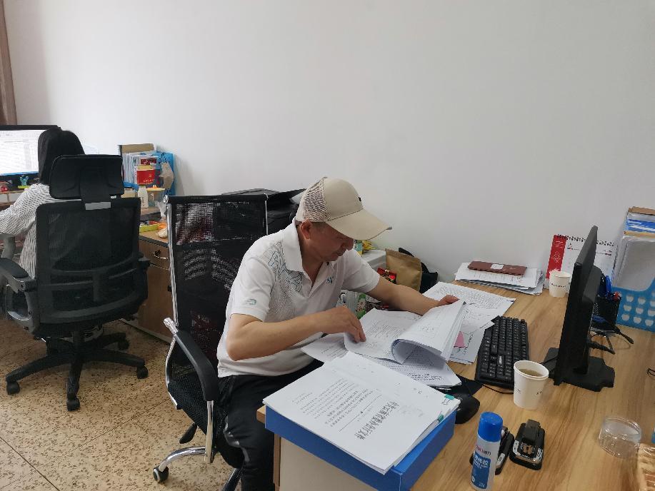 检查组工作人员翻看台账资料