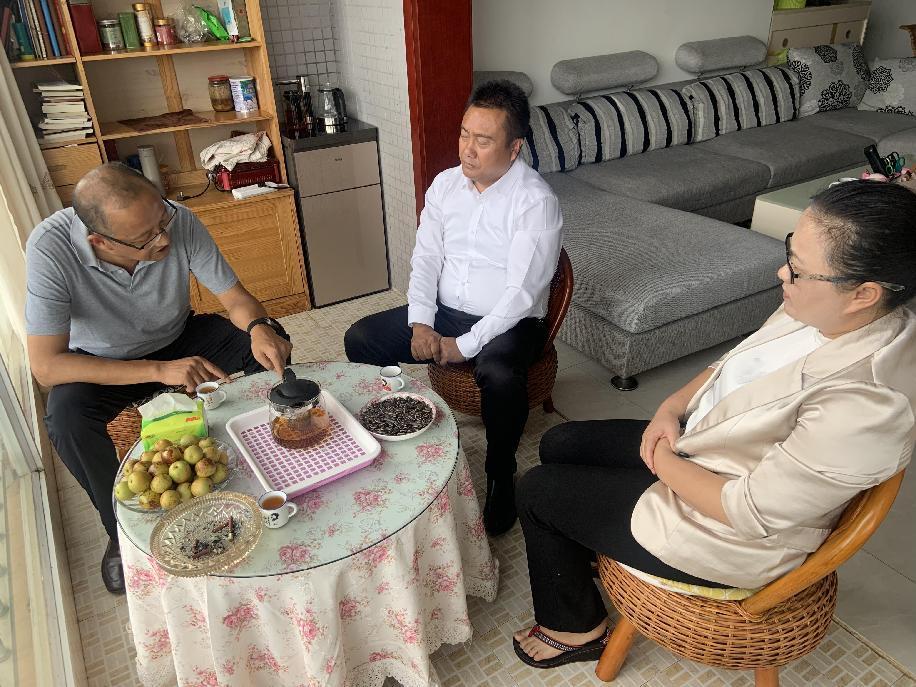 这是近日学校领导班子深入年轻干部家中,与其家属面对面拉家常、话廉洁、聊家风的一幕。
