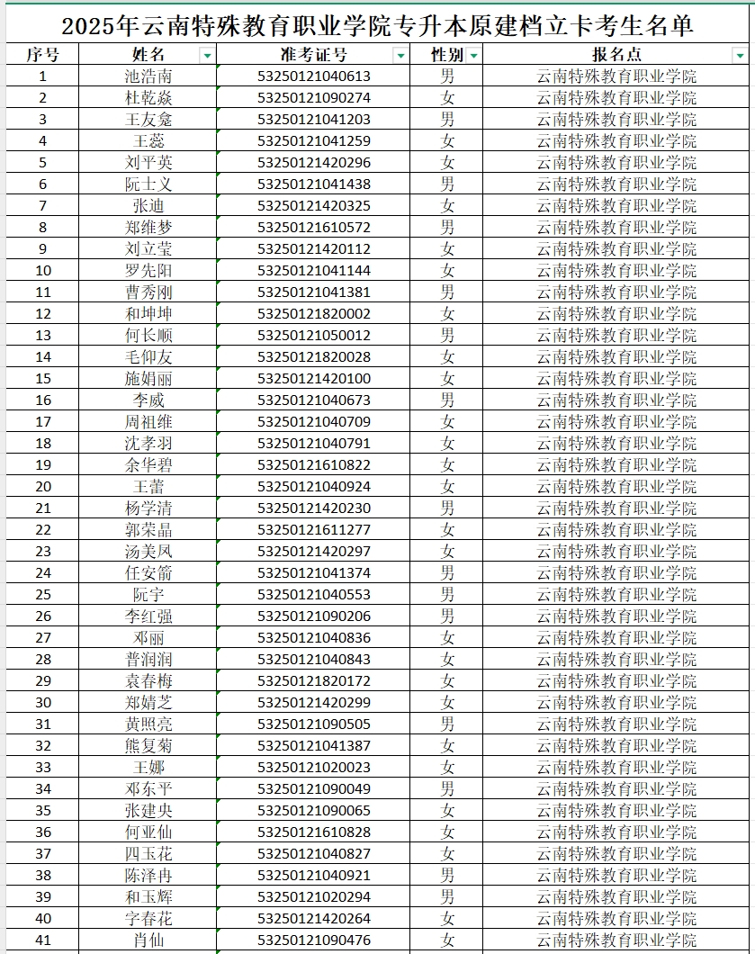 2025年KY开元集团官网专升本原建档立卡考生名单