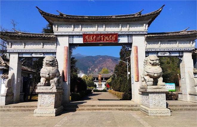 然后,参观了位于大理市湾桥镇湾桥村的周保中将军纪念馆,去探寻革命先辈的光辉足迹。大理麻石建成的牌坊、牌坊前的大石狮子和周保中将军铜像,在蓝天白云的映衬下,显得格外雄伟壮观,特别是铜像底座上镌刻的“周保中将军”五个大字,在阳光的照射下熠熠生辉。通过陈列馆内设置的“苍洱毓秀”“白山黑水”“儒将风采”“碧血千秋”“锦绣湾桥”五个展厅,充分展示了周保中辉煌的一生,再现了周保中从一位贫苦的白族农村青少年,一步步成长为一名坚强的无产阶级革命战士的毕生经历。