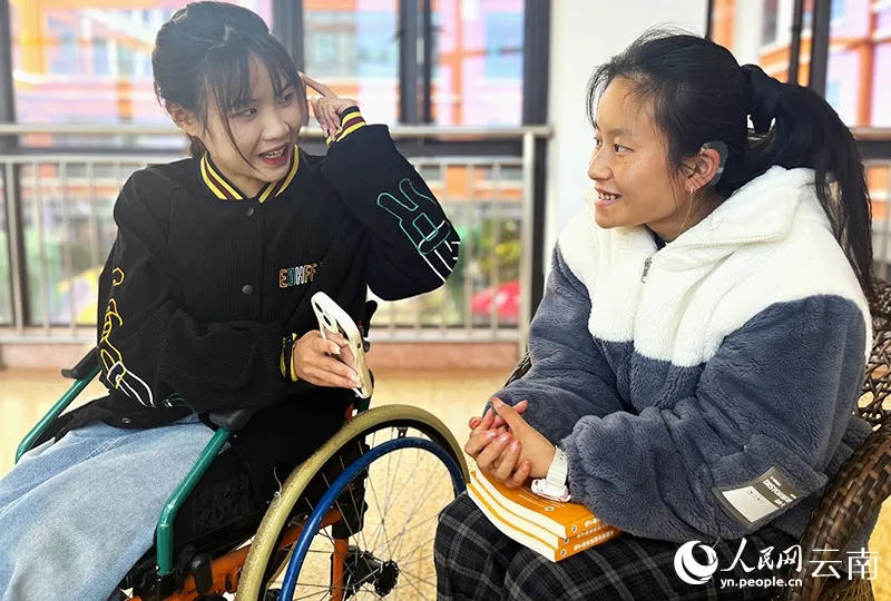 师资队伍与教学环境是育人质量的重要保障。在残健融合育人实践中,学校坚持教学条件升级与育人内涵优化并行推进。在教学条件升级上,学校建成智慧教室、康复实训中心等17个校内实训室,配备先进的教学设备与无障碍设施,打造“硬件+软件”双优的教学环境;搭建起超星泛雅(网络端)+ 学习通(手机端)在线教学平台及智慧树网络课程资源平台,近 70% 的教师已全面运用学习通开展日常教学。同时,学校积极推进过程性评价改革,将过程性考核占比提升至 60%,助力不同能力水平的学生实现全面发展;为特色育人提供坚实支撑。在育人内涵优化上,通过名师工作室、教学创新团队建设,以及全员师德师风、AI能力提升培训,推动教师专业成长,同时要求专任教师定期到企业实践,将行业经验融入教学。学校创新“互助共进”人才培养模式,创建了适应“高素质技术技能型”人才培养,以“课堂”为基础、以“生活”为实践的“课上和课下一体”、“学习和生活一体”、“理论和实践一体”的“特殊教育和康复工作体验——课堂专业能力训练——课后生活中工作实战”的“全程结对”课程体系。特殊教育专业、社区康复专业、电子商务专业的健全学生与校内残疾学生结对起来,开展“一人一案”康复,“手语翻译”互动,“个别辅导”培优的课后全程结对实践。学校还搭建“第二课堂”融合平台,组织残健学生共同参与“挑战杯”创新创业竞赛、“三下乡”社会实践、文艺体育竞赛等活动,安排残疾学生班级与健全学生班级定期开展“一帮一”“众帮一”结对互助。电子商务专业学生黄梅的故事便是融合育人成效的生动写照,患有先天性脊膜膨出的她,在听力障碍室友张洁蓉和轻微听障同学张晓宇的帮助下,逐渐走出自卑,加入国风社学会汉服妆造;站上演讲舞台,获得了云南省第六届“云岭杯”经典诵读大赛省赛一等奖;2024年被聘为昆明市呈贡区委党的创新理论巡回宣讲员。通过“残健混合编班”“同伴互助”“校园共建”等举措,以及国风社、艺术团等社团的开放参与,残健学生实现了“1+1>2”的成长效应,2024年第十一届“挑战杯”云南省大学生创业计划竞赛中,残健学生组成的团队凭借“非遗+文创”项目斩获铜奖。