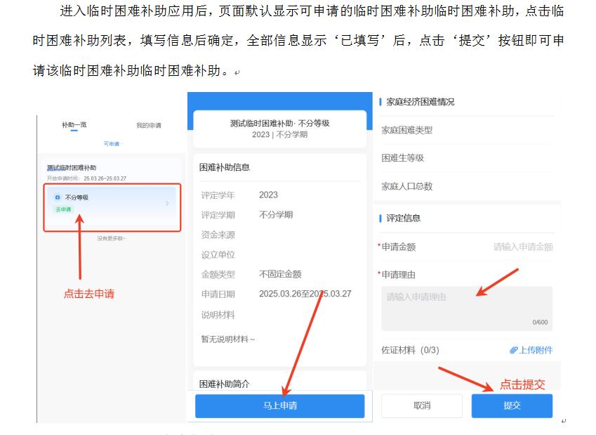 方式二:在学工系统平台“临时困难补助”板块提出申请。