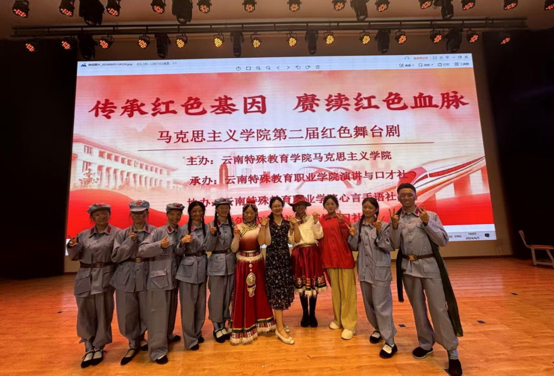 组织第二届红色舞台剧与学生合影留念