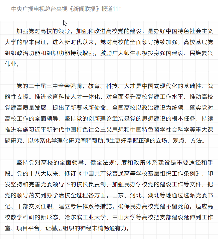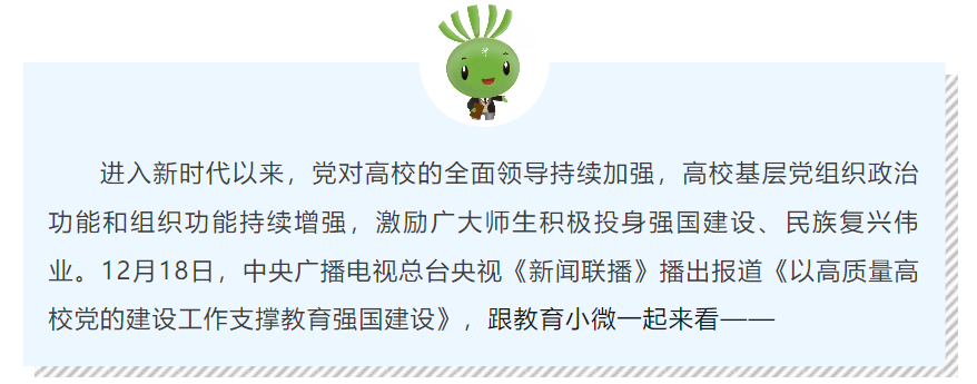 《新闻联播》报道:以高质量高校党的建设工作支撑教育强国建设