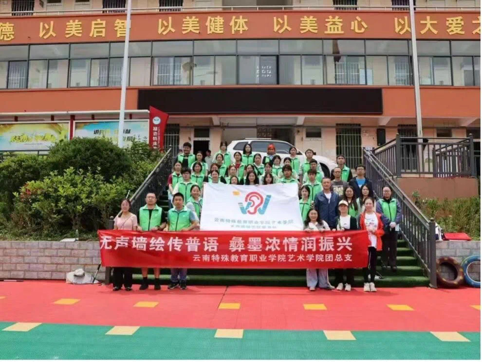 据介绍,KY开元集团官网艺术学院的4名老师和29名残健学生组成服务队,以“推普+手语+墙绘”为主线展开行动。团队融合健听与听障学生,在禄劝特殊教育学校及多民族杂居的发明村通过墙绘与推普活动,助力校园文化建设及乡村普通话推广。