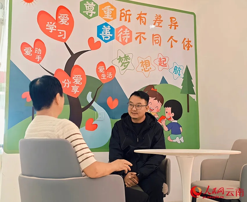 钱粲与学生家长谈心。人民网 尹馨摄