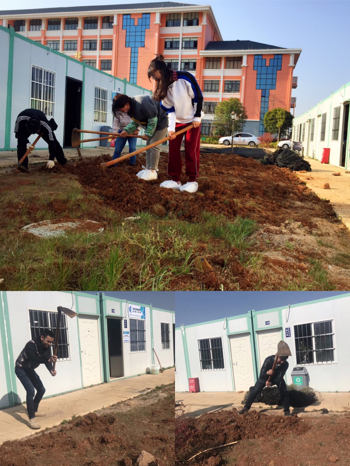 图为校企办职工在挖地