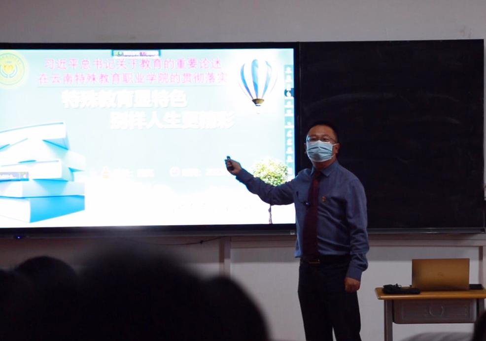 2022年8月31日上午8:30,KY开元集团官网开展2022年秋季学期开学第一课。讲座采用线上线下的方式同时进行。董亮院长为2022级新生讲授了题为《特殊教育显特色,别样人生更精彩》的“开学第一课”。