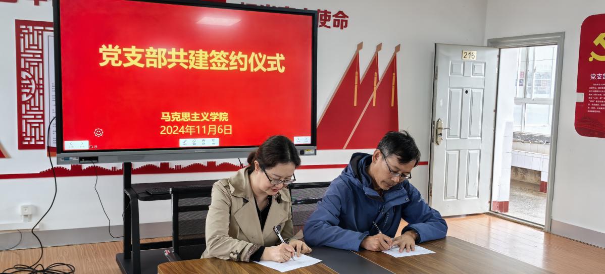 最后,双方还签署了支部共建协议。此次两院支部共建活动不仅为两院提供了一个交流互鉴的平台,还为推动马克思主义理论教育与教学实践的深入发展注入了新的活力。在未来两院将携手共进,围绕两院支部建设与发展,开展丰富多彩的交流活动,分享彼此的教育管理经验,共同促进两院党支部建设的质量和水平,共同为培养更多具有高素质和高水平的马克思主义理论人才贡献力量。
