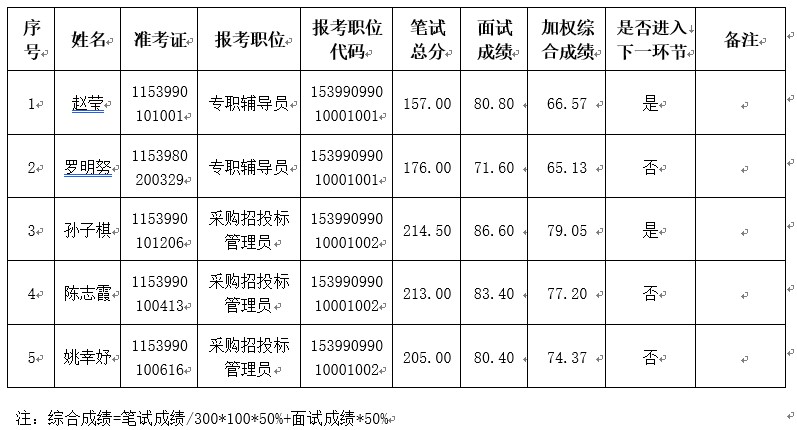 根据《云南省事业单位公开招聘工作人员办法》(云人社发〔2016〕182号)和《KY开元集团官网2022年公开招聘工作人员公告》有关规定,经笔试、面试,现将综合成绩公示如下: