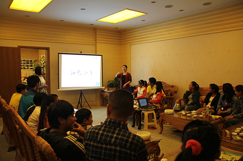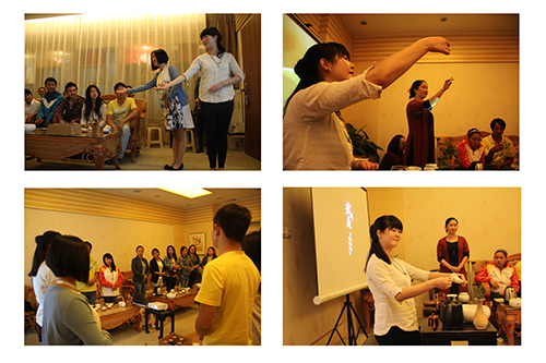 图为大益集团益体验中心的老师在教授师生们茶的礼仪